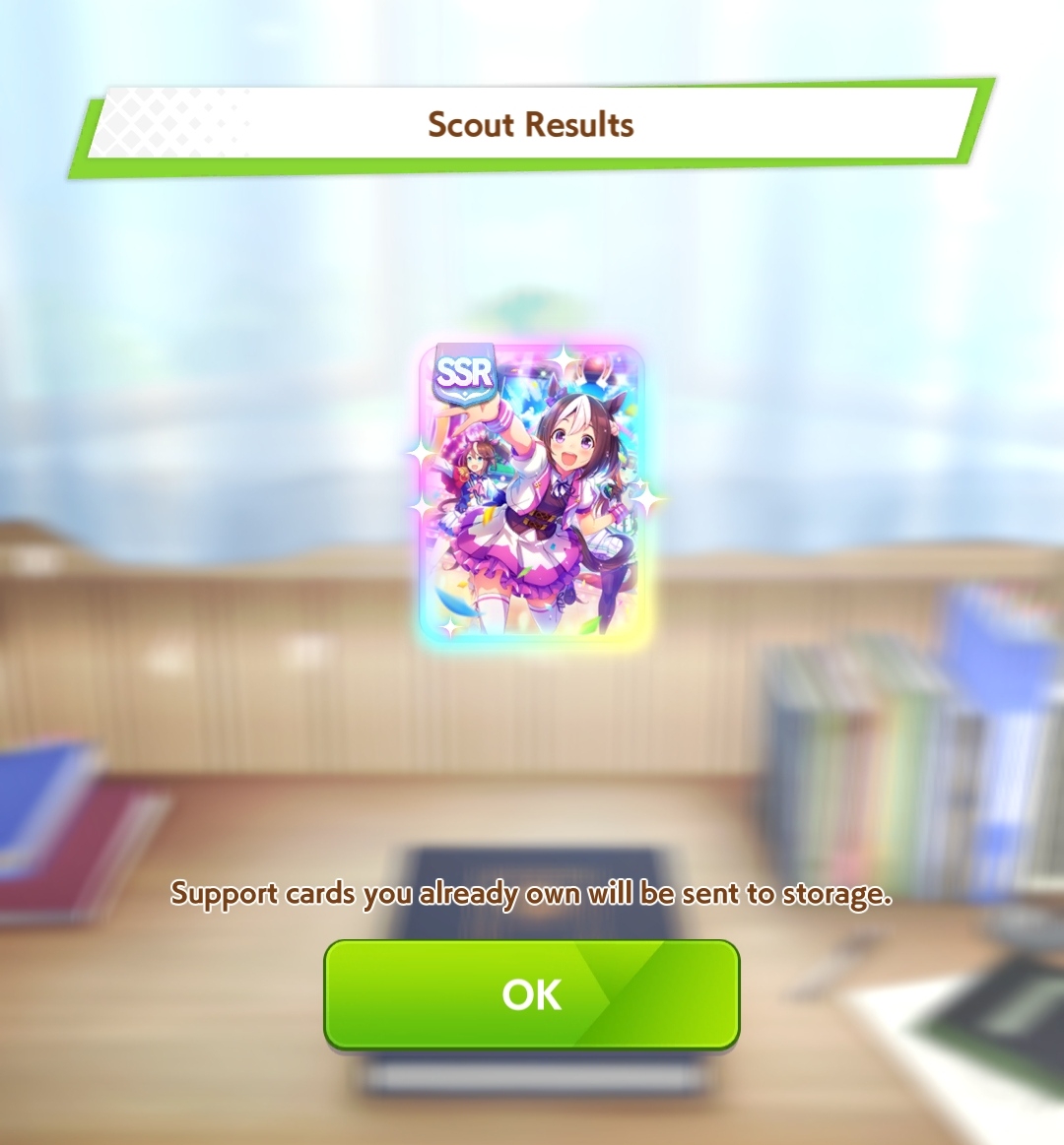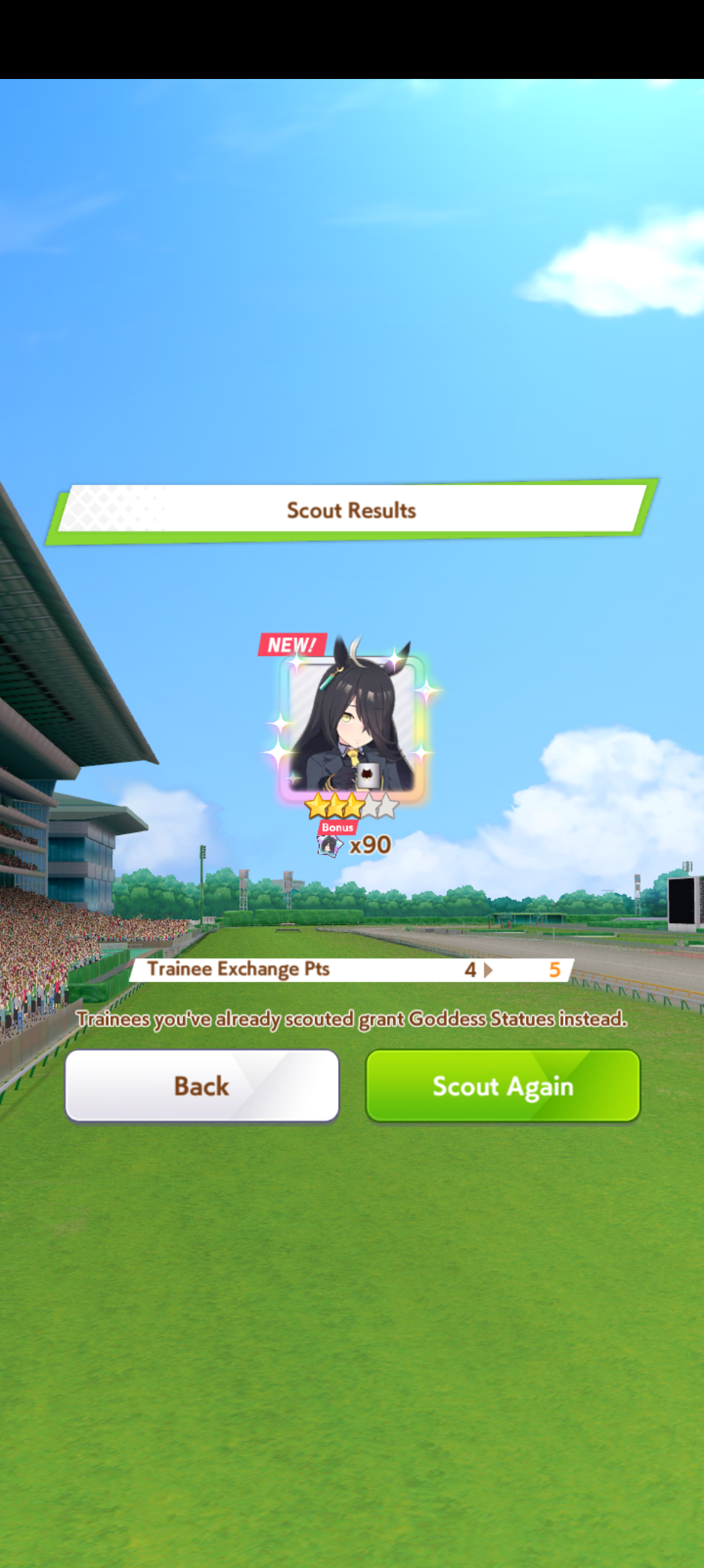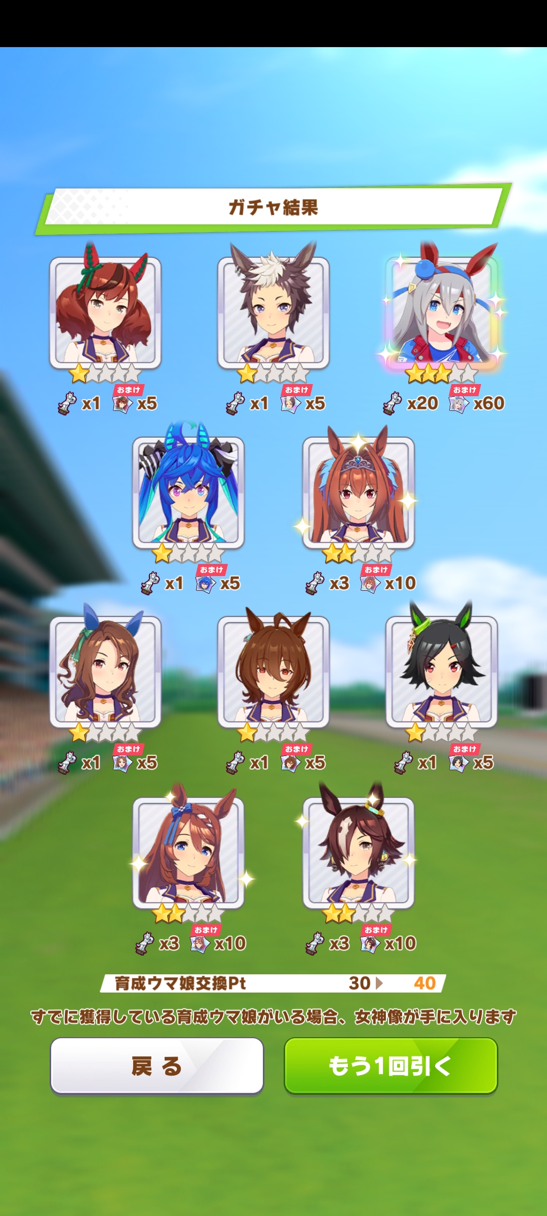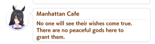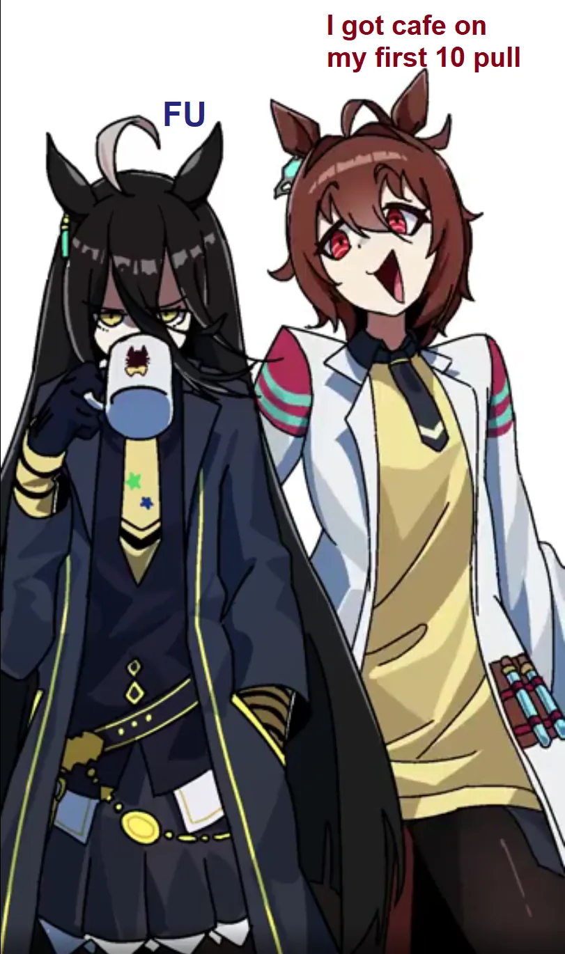 К слову о карточках.Игра хитрая залупа, ты закатываешься с идеей, пойду крутить лошадей, но это первая же ошибка новичка. В игре надо крутить карточки, которые состовляют основу при прокачки лошади в карьере. От них зависит, будешь ли ты с трудом накачивать А рейтинг или Эс, условно, рандом всё равно решает, но тем не менее, колода очень важна. В идеале, ты закатываешься через неделю и крутишь баннер карточки Китасан Блэк, которая имба и накручиваешь её 5 копий. Хотя бы 3. А дальше делаешь что хочешь уже.
