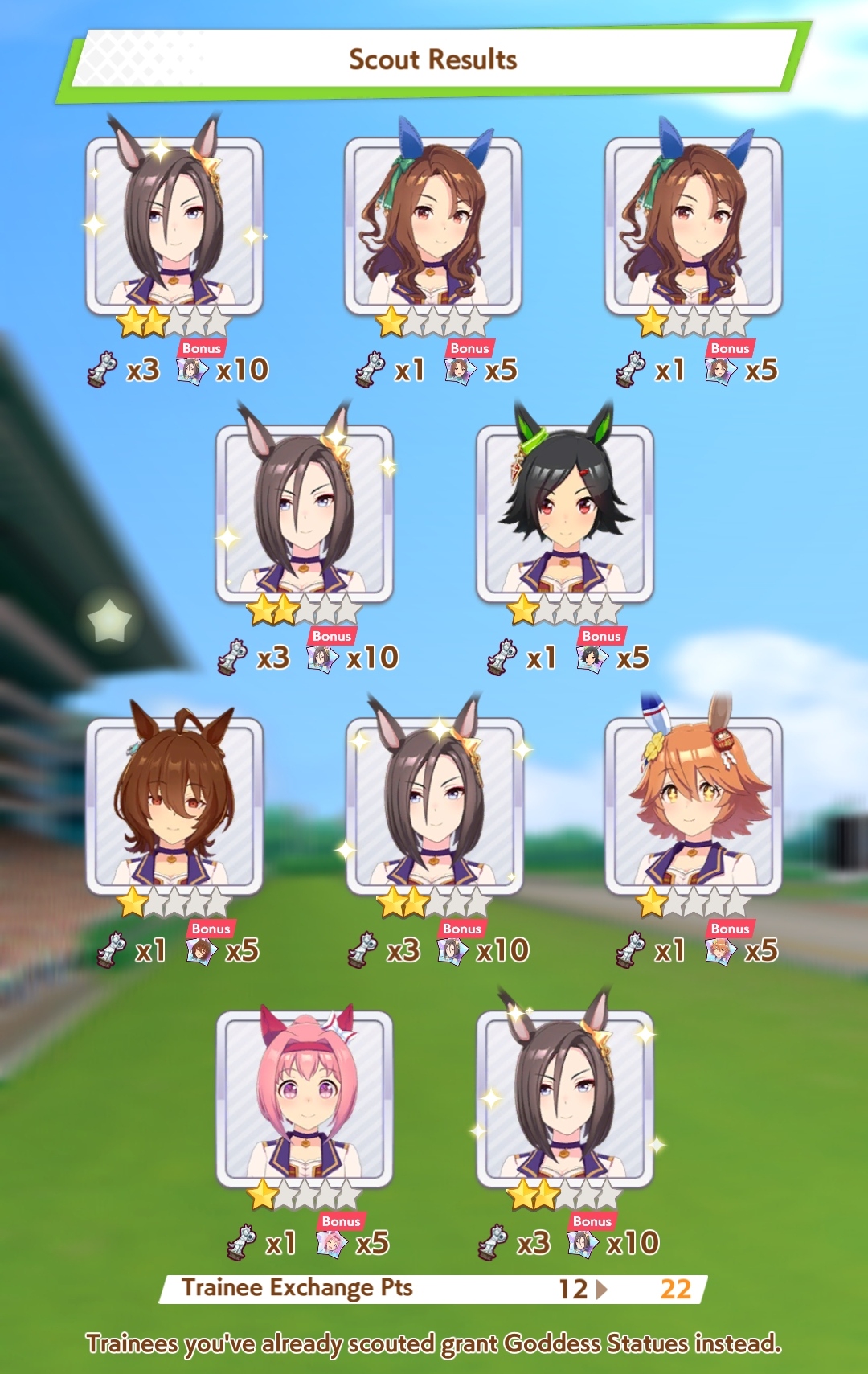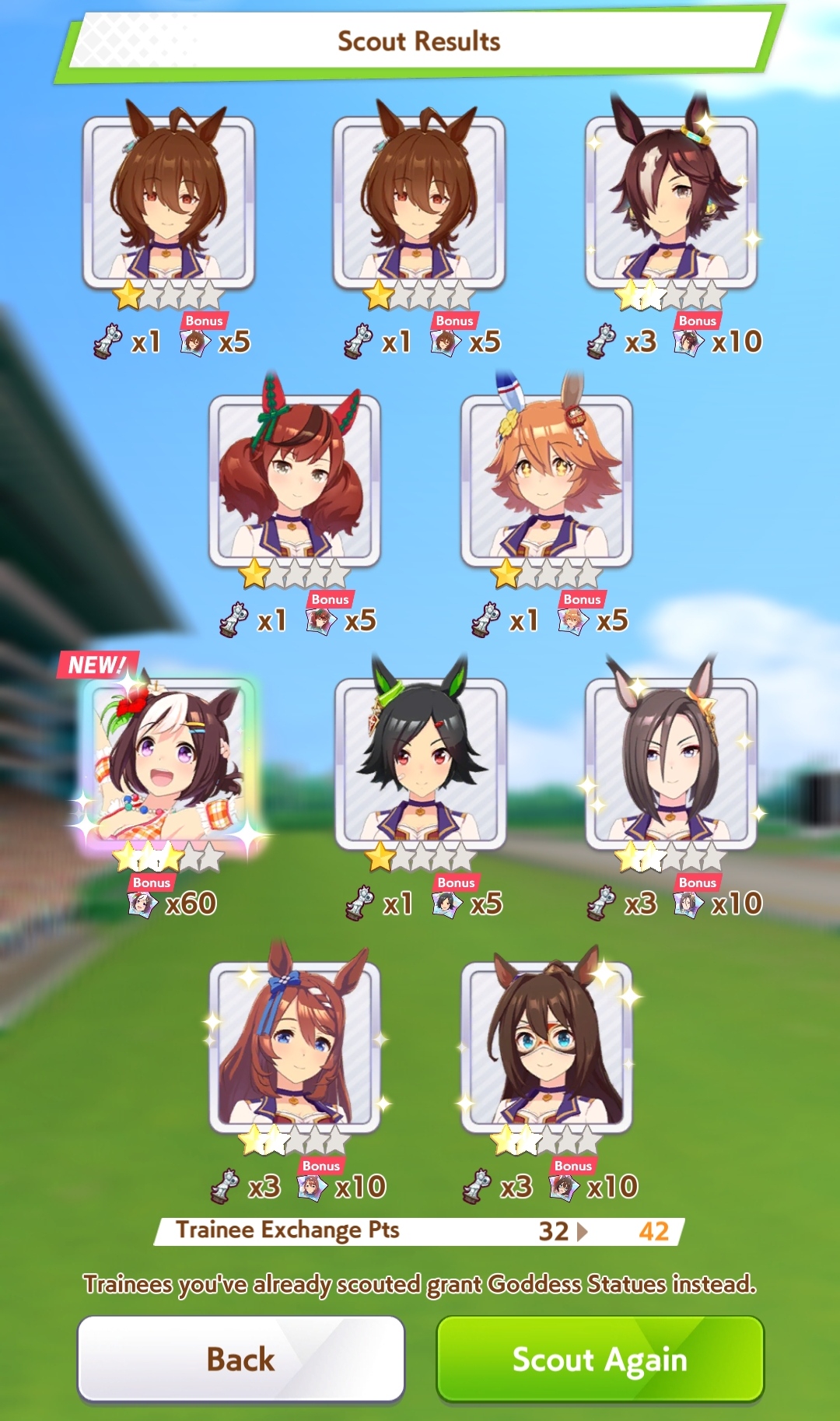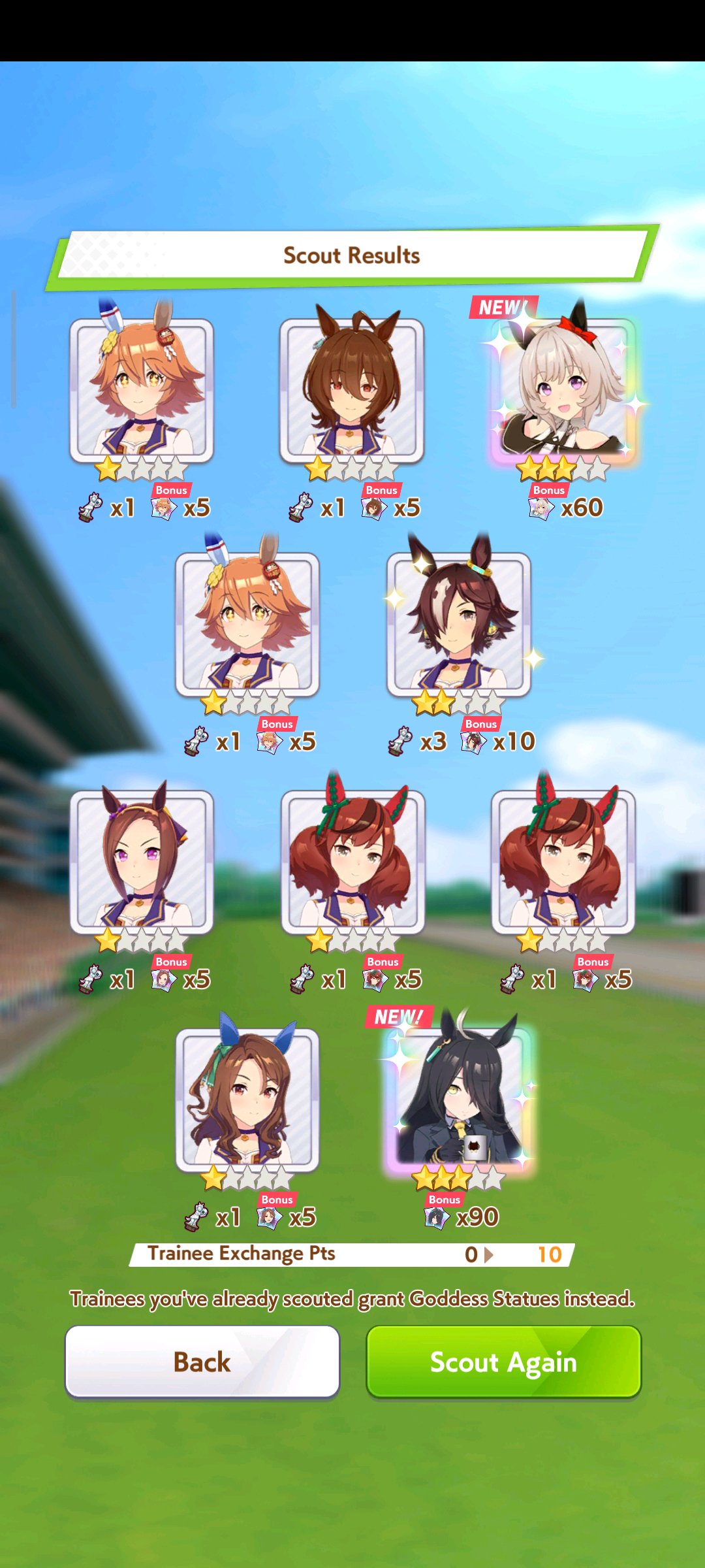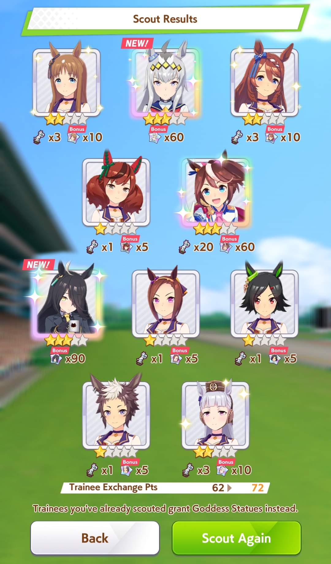 К слову о карточках.Игра хитрая залупа, ты закатываешься с идеей, пойду крутить лошадей, но это первая же ошибка новичка. В игре надо крутить карточки, которые состовляют основу при прокачки лошади в карьере. От них зависит, будешь ли ты с трудом накачивать А рейтинг или Эс, условно, рандом всё равно решает, но тем не менее, колода очень важна. В идеале, ты закатываешься через неделю и крутишь баннер карточки Китасан Блэк, которая имба и накручиваешь её 5 копий. Хотя бы 3. А дальше делаешь что хочешь уже.