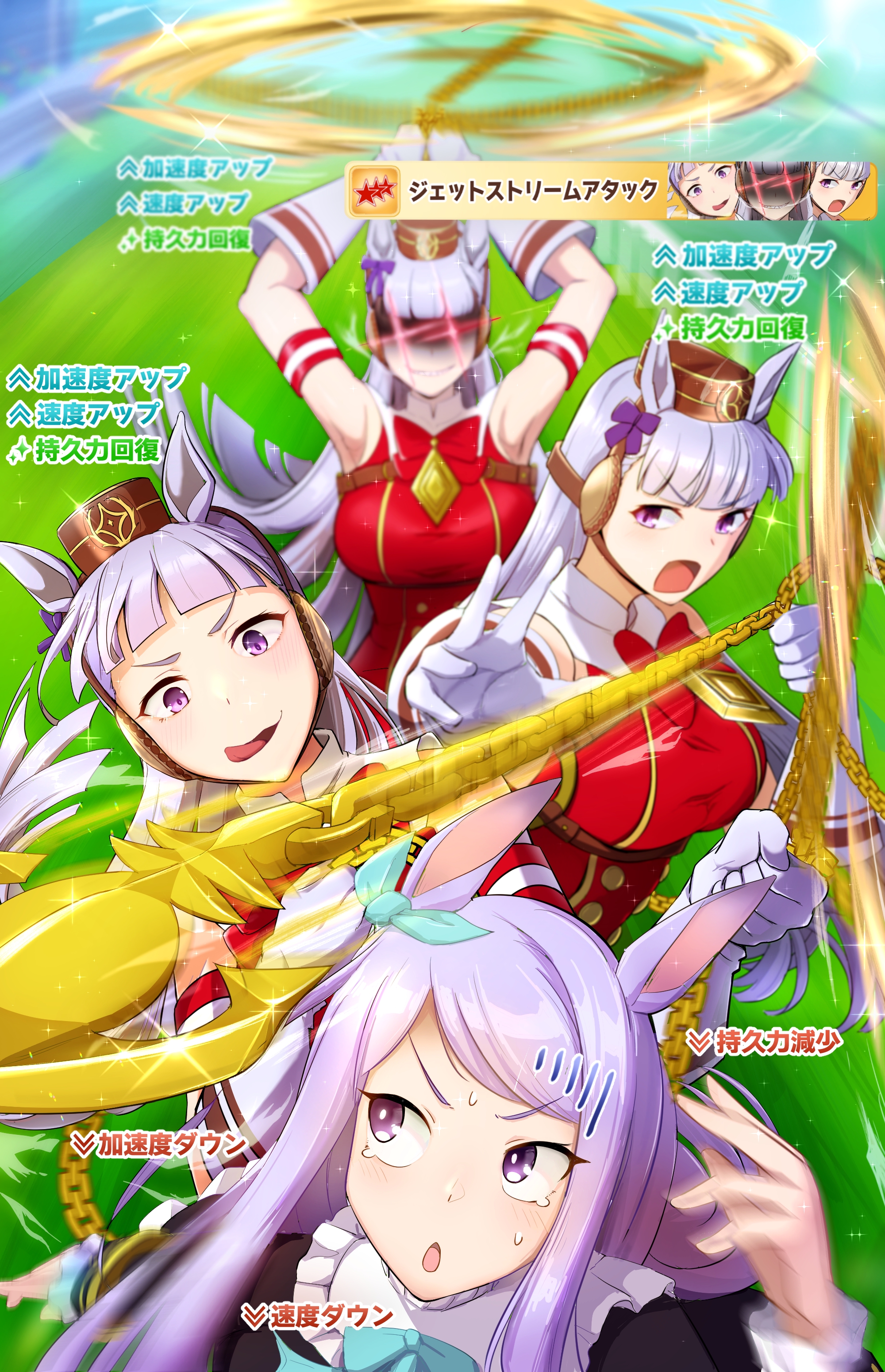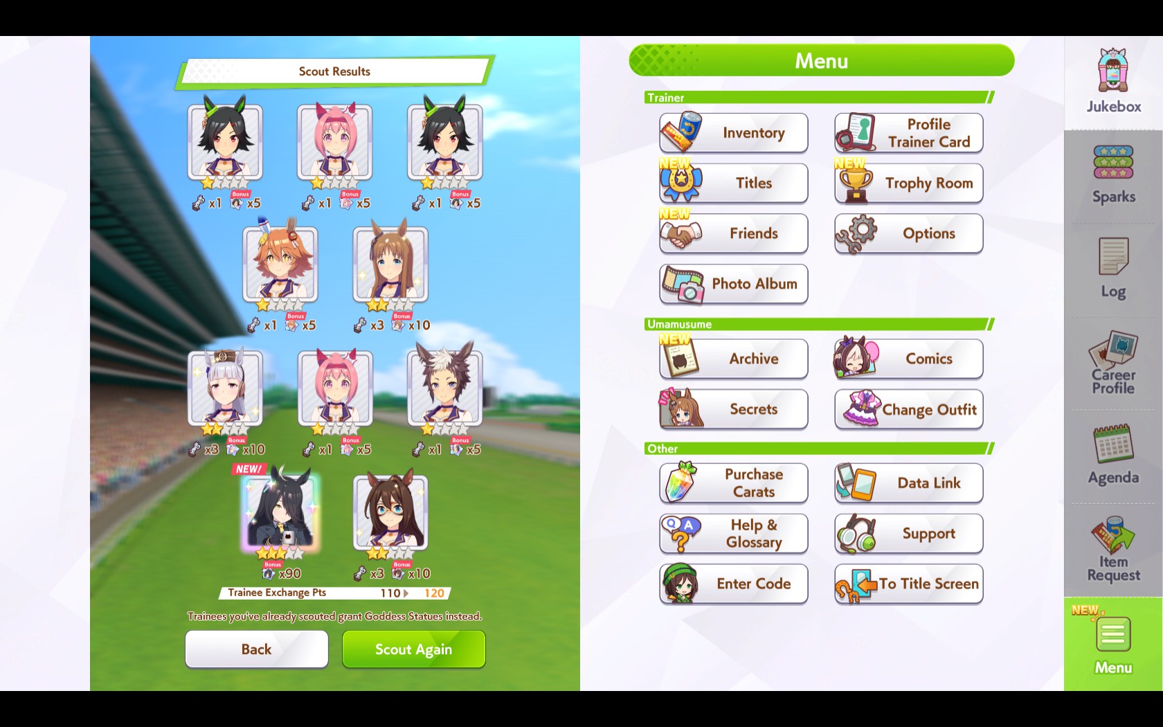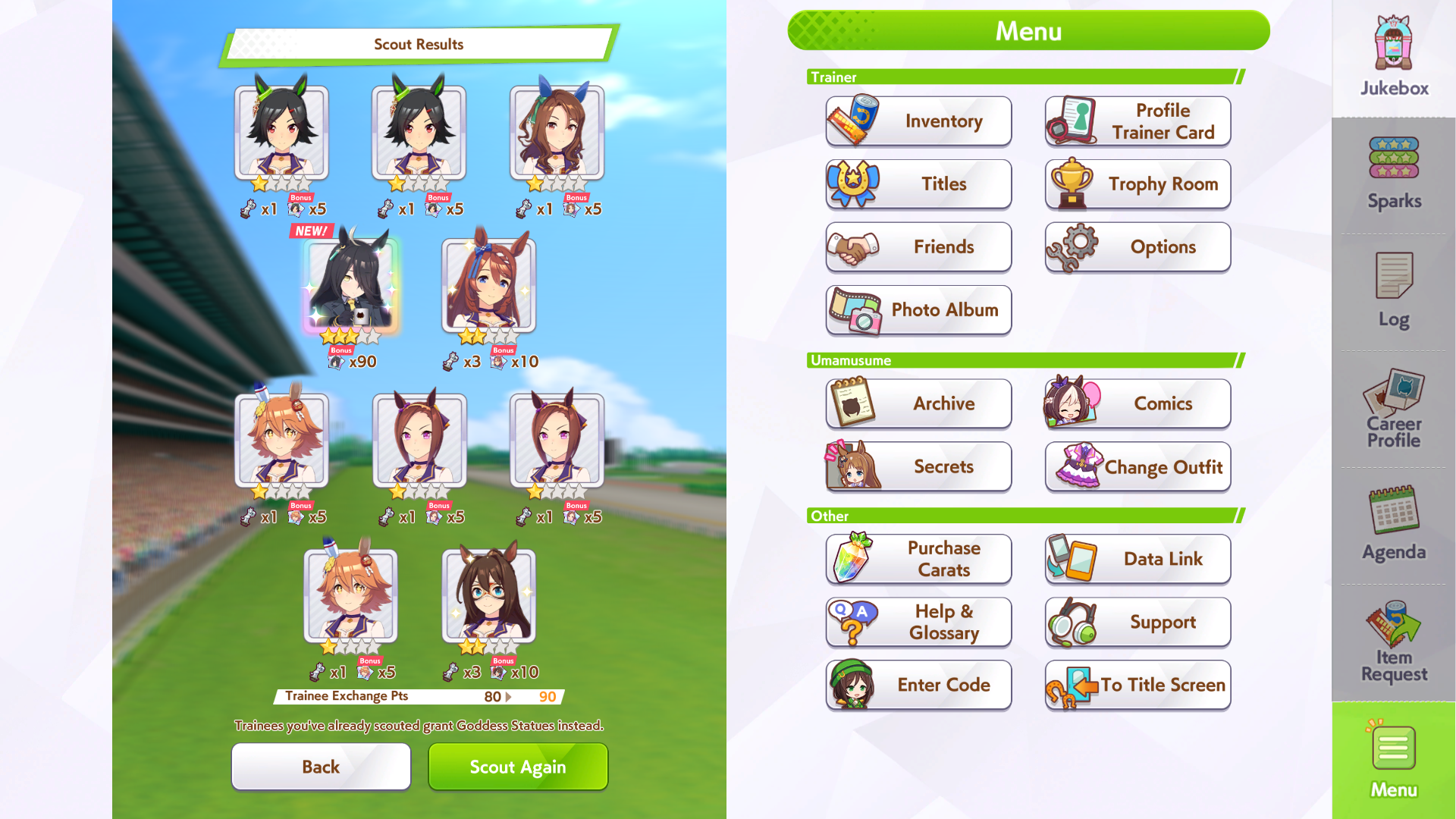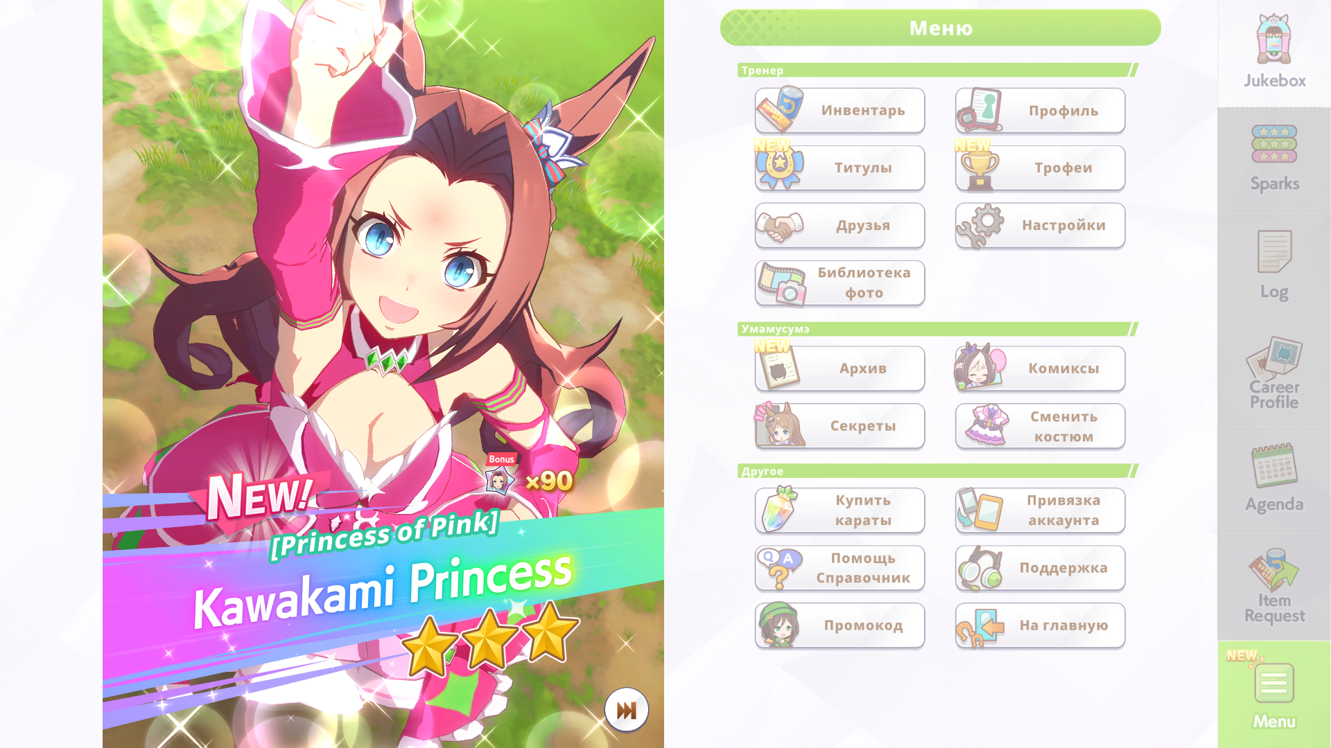 К слову о карточках.Игра хитрая залупа, ты закатываешься с идеей, пойду крутить лошадей, но это первая же ошибка новичка. В игре надо крутить карточки, которые состовляют основу при прокачки лошади в карьере. От них зависит, будешь ли ты с трудом накачивать А рейтинг или Эс, условно, рандом всё равно решает, но тем не менее, колода очень важна. В идеале, ты закатываешься через неделю и крутишь баннер карточки Китасан Блэк, которая имба и накручиваешь её 5 копий. Хотя бы 3. А дальше делаешь что хочешь уже.
