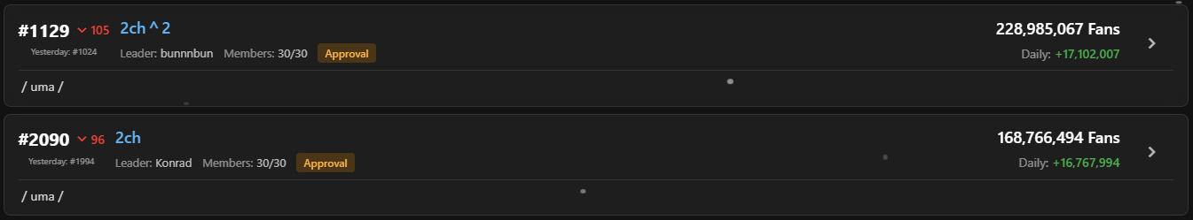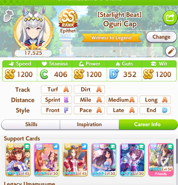 Короче отбегал сегодня все билеты. Ну такое, слишком разный уровень соперников что бы делать какие-то выводы. Единственное что можно сказать - лэйтеры походу опять сосут. Победить могут либо эндеры, либо пэйсер с фронтовскими абилками у которого они прокнули. Поэтому тут действительно важно пэйсерам брать абилки-ульты фронтов, той же сэйюнки либо пасы. Дичь конечно, не увидел бы своими глазами не поверил, но это так. Фронты отсутствуют практически как класс, а даже когда и есть то особой погоды не делают. Разве-что какие-то дичь сборки работают типа фронт-пасы и т.д. у кого китовости разумеется хватит. Так же видел такое чудо как энд-клозер Маяно которая отъебала в финальном спурте Голшипа, чего только не бывает, чувак наверно знатно упоролся. Хотя Голиши вовремя прокнувшую на повороте но стопинг ми, с С-кой на дистанцию не остановит пожалуй уже ничто. Ну естественно статы должны быть не ниже тысячи. Единственное что можно сказать статы решают практически всё, в распределение первых мест принимают участие те у кого от 1 до 1,2к спида, всё что ниже просто отсеивается, дальше возможны варианты.