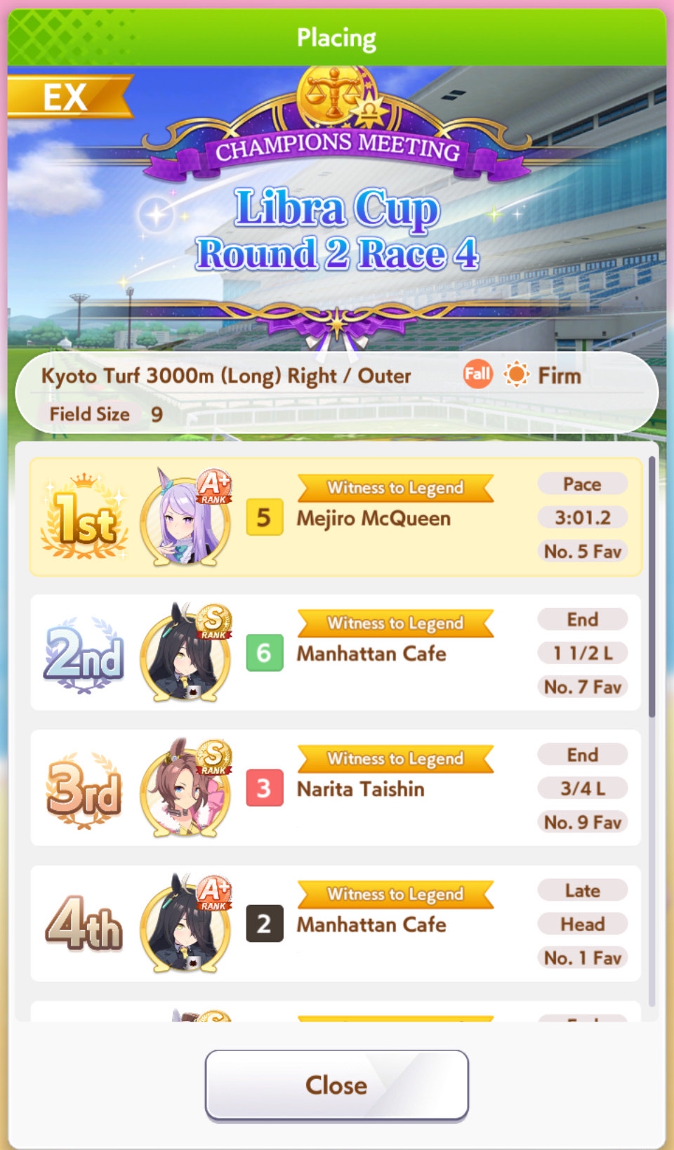 Cгонял 20 забегов, все 20 выиграли эндклозеры. 18 мои Тайшин, Корабль и Гном. 1 у ГШ соперника и 1 у S+ Кафе с тремя статами по 1200. Так нихуя и не понял, что лучше третим слотом брать - дебафф Нейчу или рыжуху айнотэкид.