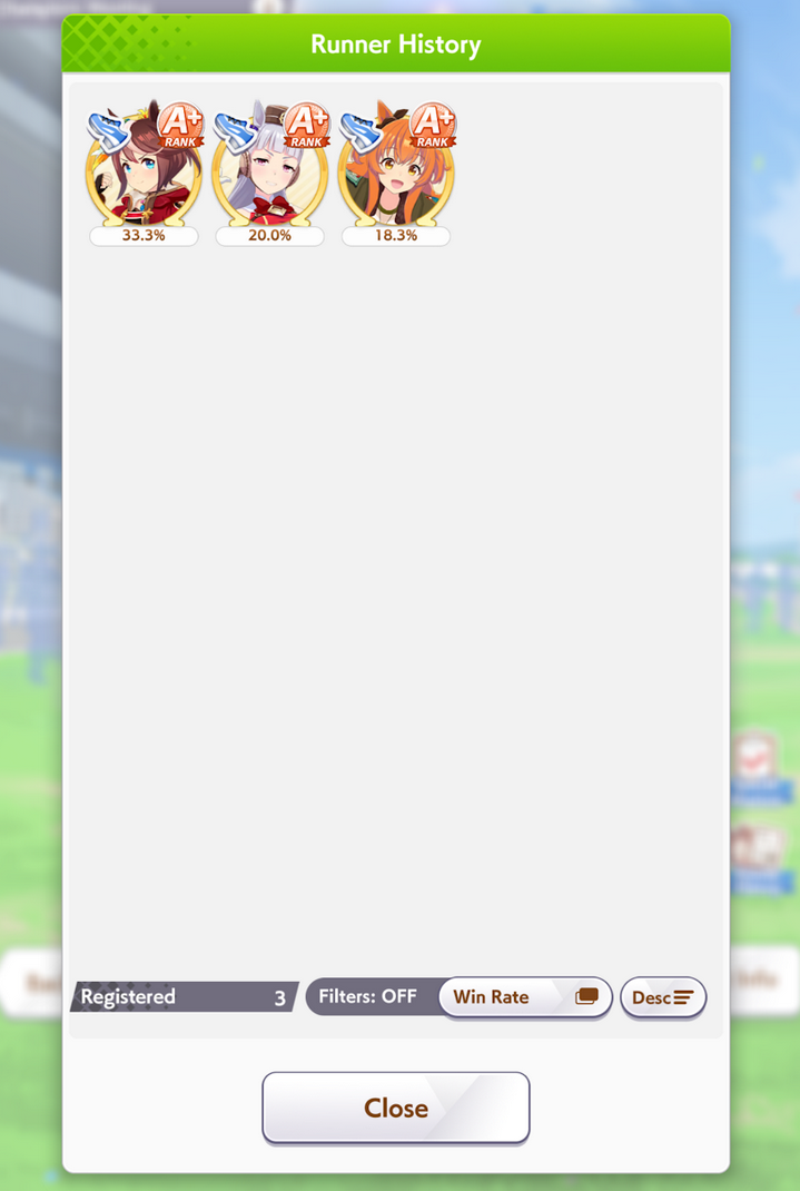 Но вообще, можно и так, зарероллить Кафэшку, играть всяко приятнее за любимку, правда она бегает только медиум и лонг, причём медиум так себе. А потом как хочешь. Играть можно и бесплатными лошадками, там имбы даже больше чем среди баннерных.