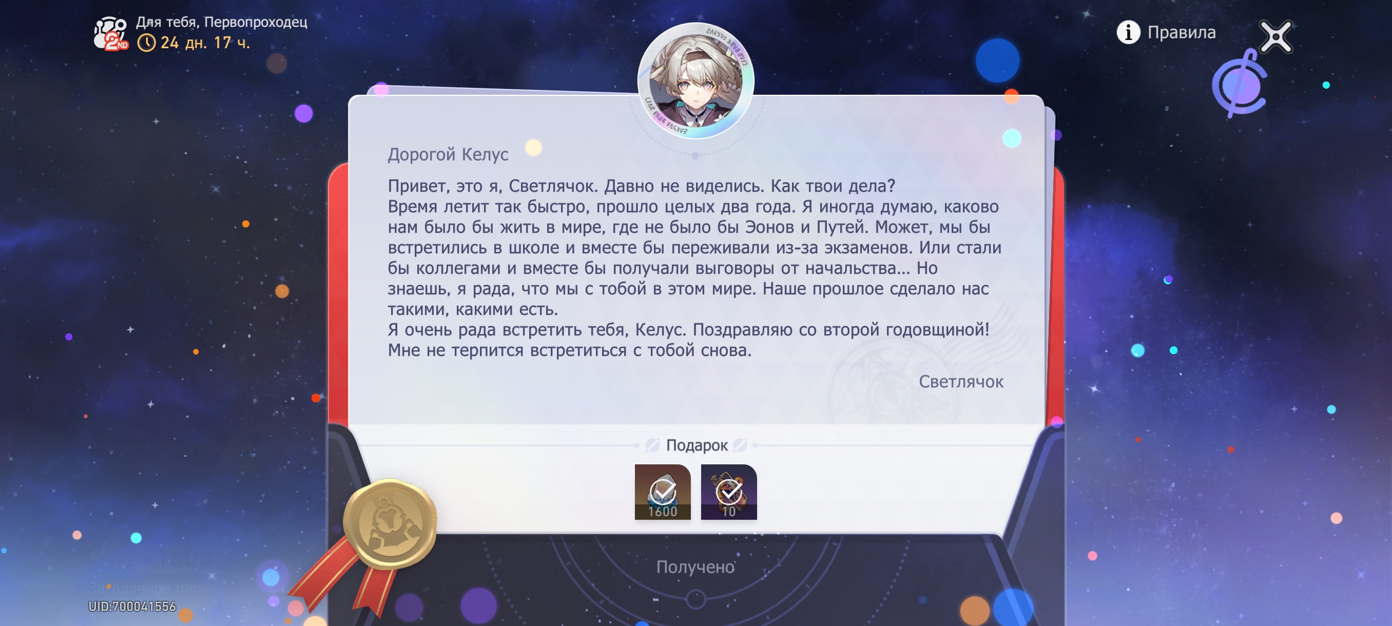 💫 Светлячок окончательно погибла на Пенаконии, растворившись на руках у Первопроходца, отчего он впал в истерию, и всем свои существованием взмолился самому себе в конце времён. И тогда Терминус своей божественной силой изменил прошлое всей вселенной — лишь для того, чтобы Светлячок осталась жива.