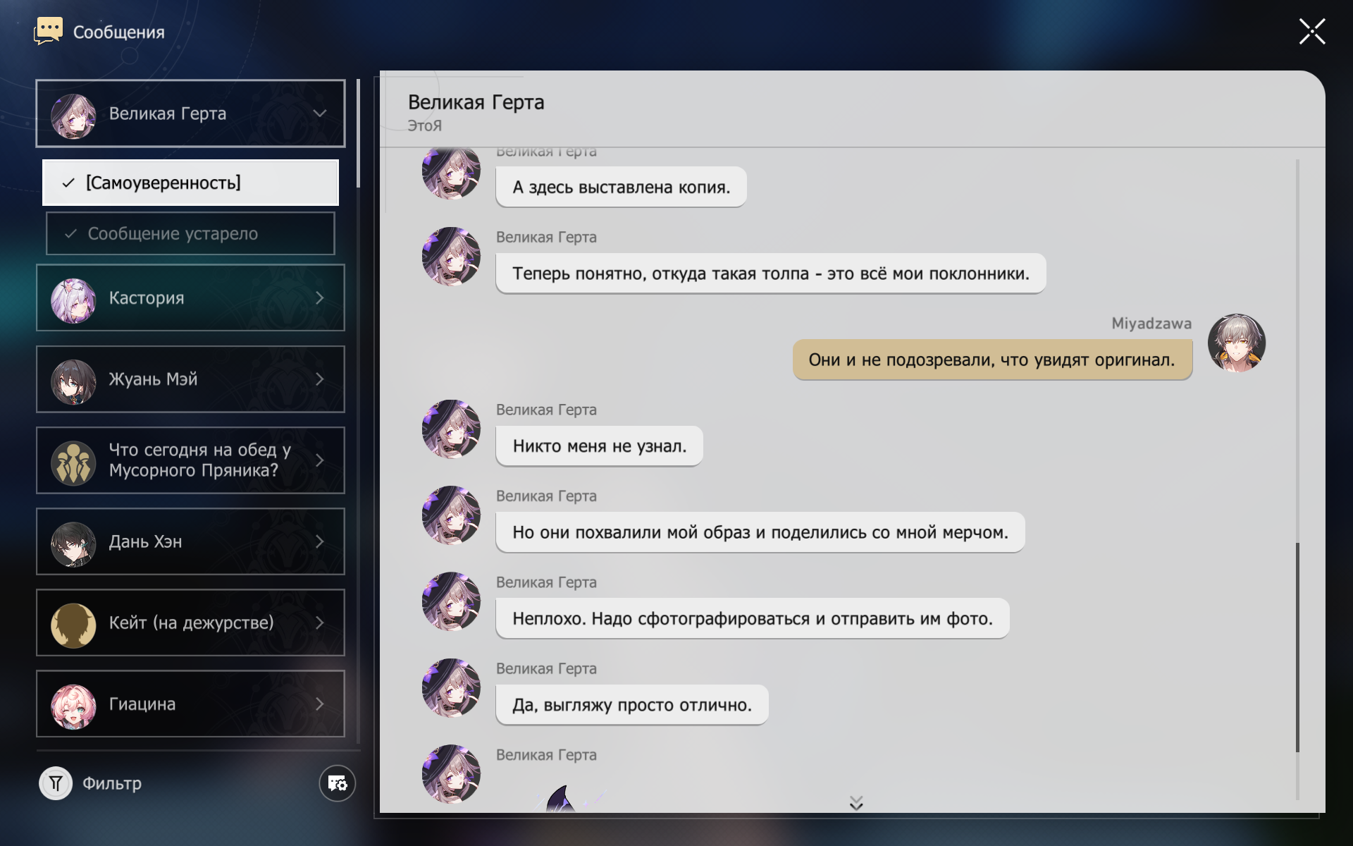 >>6067647 Ни фаны ни хейтеры Амфореуса не отметили, что ВСЕ диалоги в игре - неживые и чисто функциональные. Потому что никто из них не читал сюжет хехе Словно по скрипту передают друг другу информацию без какой-либо присущей живым людям неловкости, шуткам и чувств. Сюжет хорош и структурирован, но это лишь подтверждает тезис. Это к тому, что в срединных главах хонкая 3 все в точности наоборот. Похуй что сам сюжет может быть слабее. Похуй что тогда еще не придумали мегаэпичный лор. За общением персонажей приятно наблюдать, поэтому хонкай 3 зашел за 1 присест. Но это было раньше, сейчас там тоже мертвые диалоги. А Г и Х каждый патч приходится проходить в несколько заходов. Вот например свежее: всё общение между бимбами памяти сухой доклад нужной для сюжета информации.