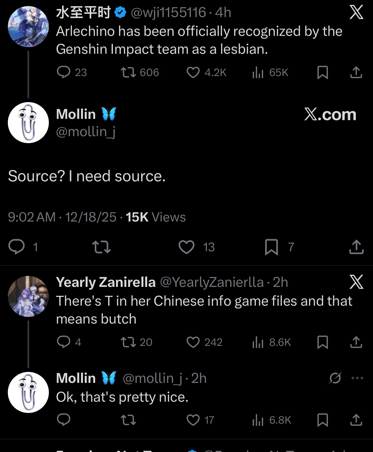 >>6067358 На самом деле действительно редкий пример персонажа в проекте Ляо. Обычно женские персонажи в Геншине имеют либо какие-нибудь ядрёные комплексы, или трагическое прошлое, или мучаются, тяжёлое прошлое и превозмогание. Иногда ГГ дают вмешаться, иногда нет.