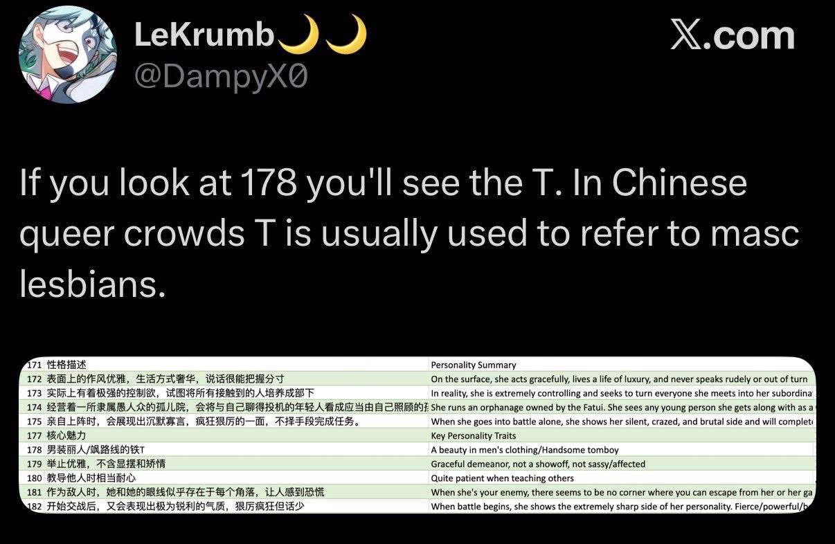 Все эти параметры и еще ряд других берешь, выстраиваешь табличку и начинаешь постепенно заполнять все ниши. Это можно десятилетиями заполнять. Но ляо не такой - ляо высирает паверкрипы, которые просто во всем лучше старых персов, и нахуй шлет всех предыдущих