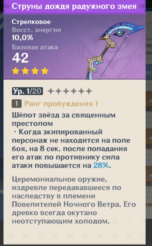 Ахах, а ведь могли сделать не силу атаки, а дамаг в целом, но зачем делать универсальный лук для оффилд дамагеров, пусть будет атака. Которая ок только 2.5 чемпикам и то с нюансами. Той же Фишль нафиг не нужна восстанова и есть более крутой бесструнный, или вон гаснущие сумерки, или две сигны четверки, одна на ешку, другая на дамаг с руки (ну и бред). И 5 пятерок будут норм - сигна Торта, аква, элегия, этот с баннера и крыло.