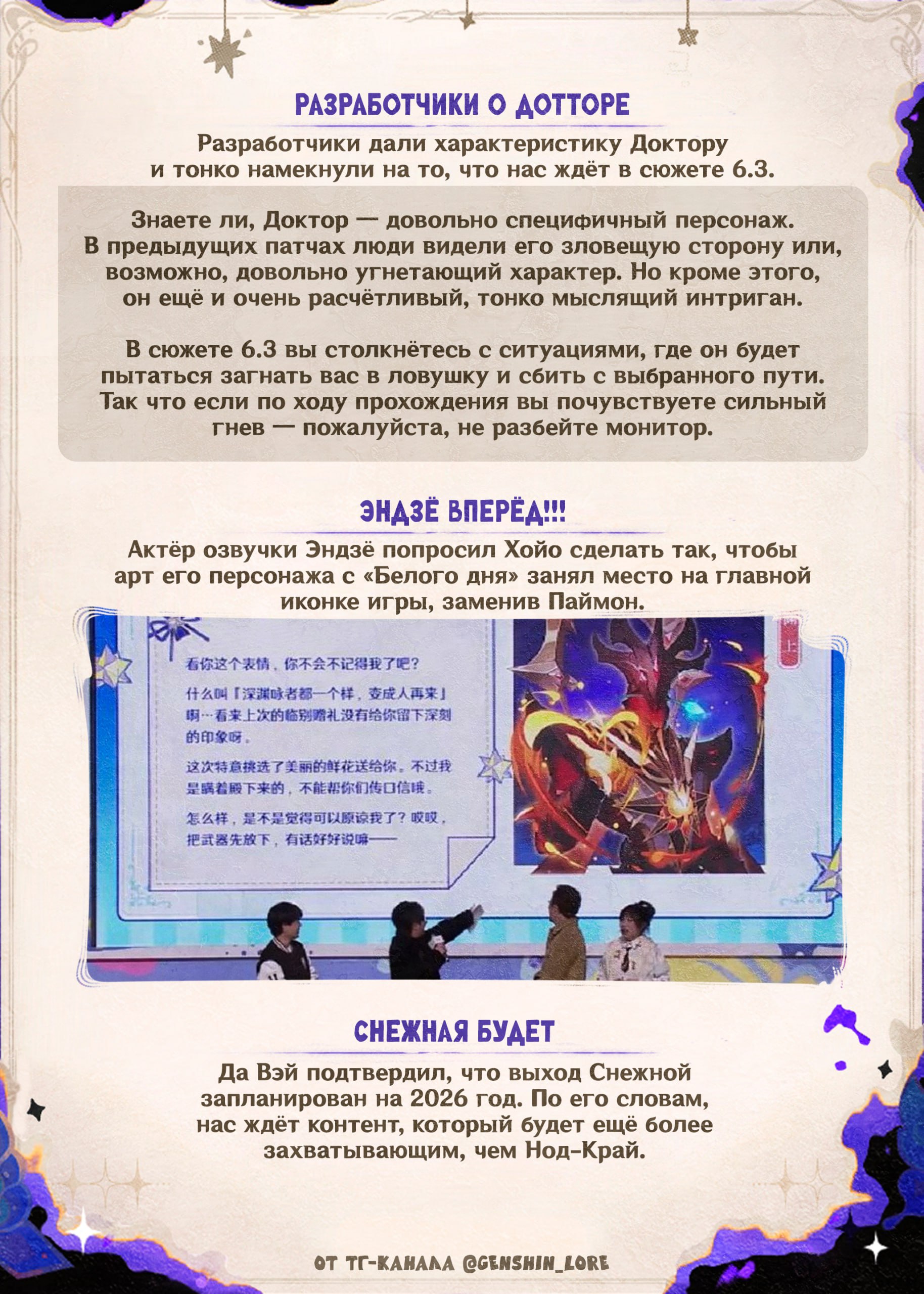 Я не особо понимаю позицию Дед Мороз по поводу фатуи: в Монде и ЛиЮэ они плохие, в Инадзуме тоже плохие, но скорее покасательной. В Разломе они хорошие и вообще жертвы. В Сумеру скорее нейтральные в целом как организация, там только Предвестники шалят. В Фонтейне ярко положительные. В Натлане вообще герои. В Нод-Крае снова чудистые... Прям качели какие-то из крайности в крайность.