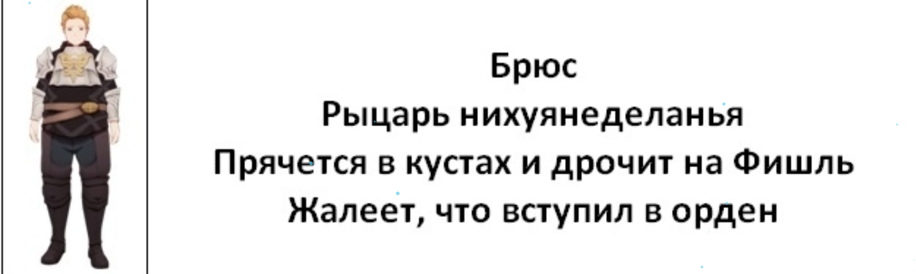 >>6164281 А что поменялось в его словах? Просто приоденет пиджачок, в котором еще принцем был в своем мире, а не простотголопузым табибой Плюс у них там с сестренкой наряды жруг на друге подвязаны, так что память ему дорога о сестренке, а не о его миое в целом. Так что Лобяке просьо мягко намекнули идти нахуй, но когда дура не поняла, то чмоне пришлось еще потом наглядно на табличке рисовать себя с сестренкой, как бэ намекая, что никакой лобяки ему не нужно. Она только тогда поняла наконец, что ее отшили и брльше табибу не донимала.