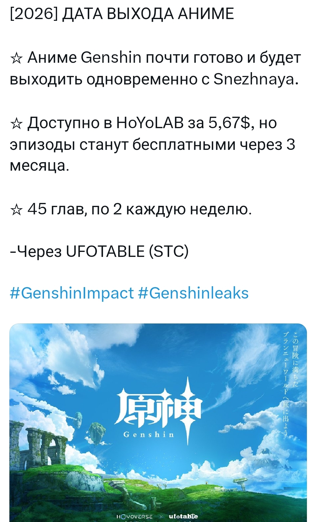 >>6166394 что за хуйня тут написано? >выходит аниме >аниме по главам каким главам хуисос ебаный который делал эту картинку ? 45 на 2 не делится. главы есть только в условной манге. >доступа за бабки условный нетфликс с возможностью посмотреть все бесплатно через 3 месяца.