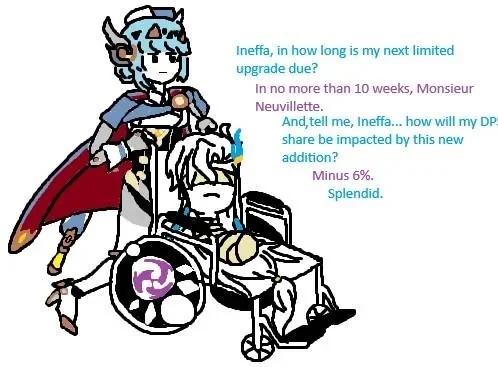 >Геншин эта та франшиза, где упорото игнорируются самые мемные у фандома персонажи, например Вареса, Йоимия, Ноелль, Чичи, Геодед, Навия, Вжушка