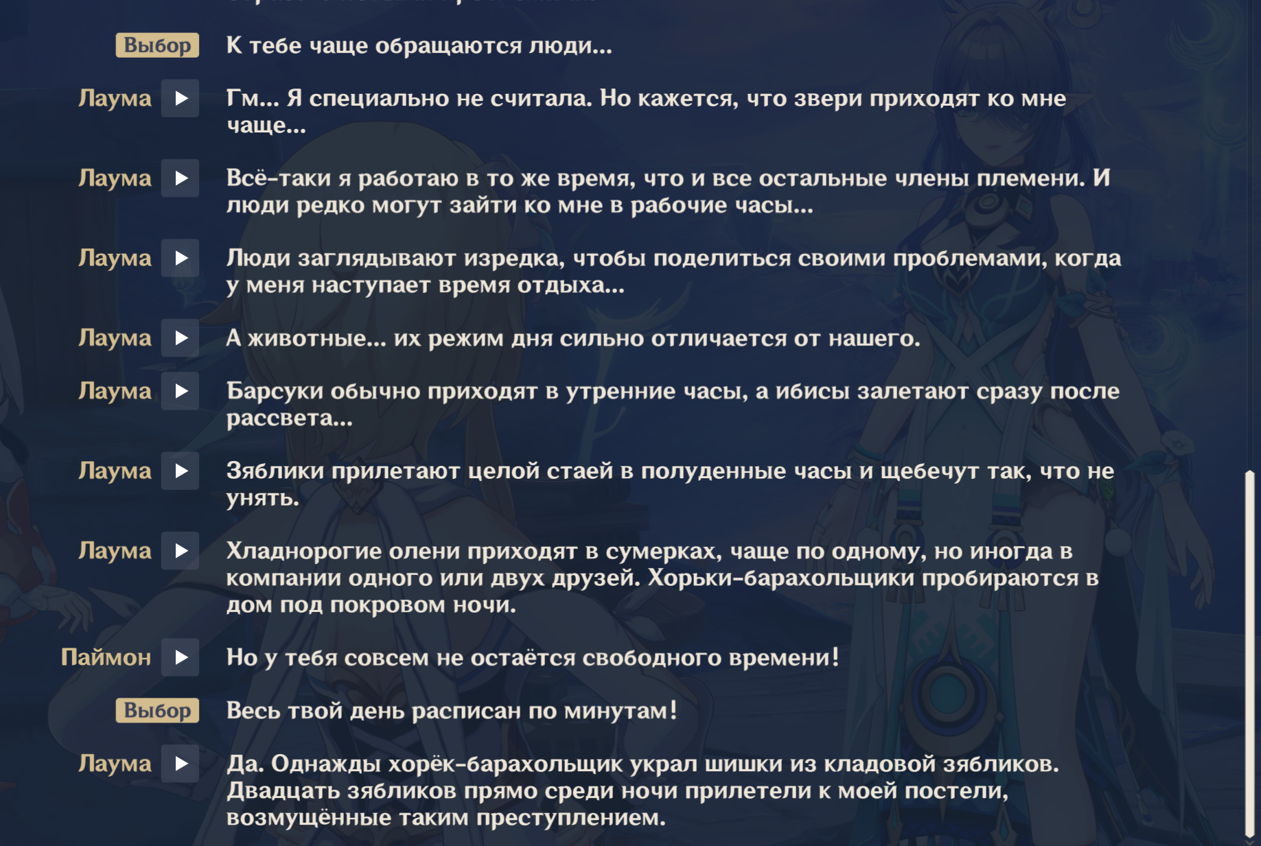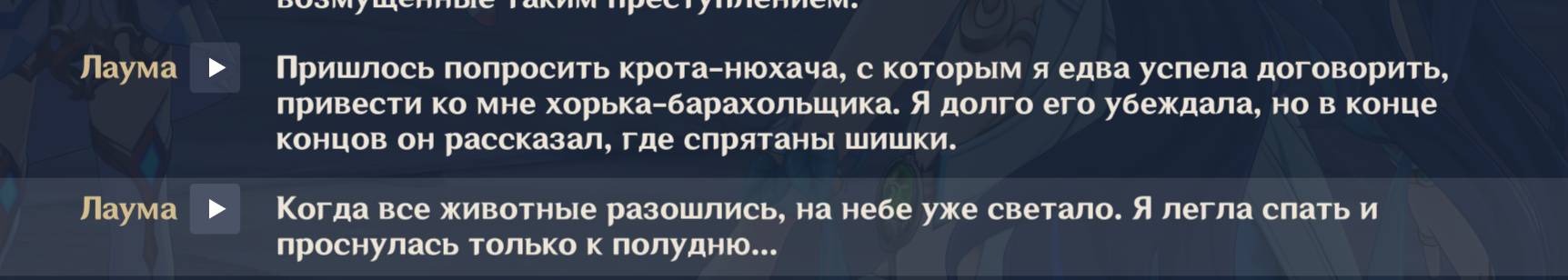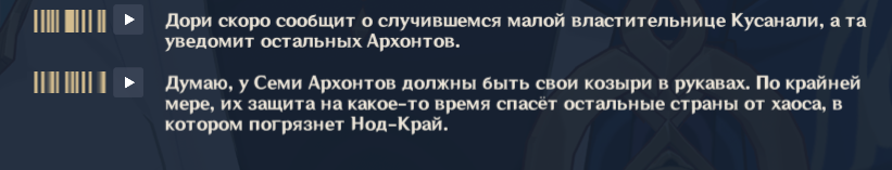 Я напоминаю, что Геншин эта та франшиза, где упорото игнорируются самые мемные у фандома персонажи, например Вареса, Йоимия, Ноелль, Чичи, Геодед, Навия, Кека, зато про Туалетыча и Кальбедо километровые этажи текста и их реплик в сюжетках. Но хуй с ними, это хотя б игральный персонажи, самое большее внимание уделено каким-то неписям, на чью историю мне насрать. У нас игральных персонажей уже больше 100, это ж целая деревня, а неписи продолжают занимать 80% болтовни. Я когда уже вижу непися с синеньким восклицательным знаком, то мне плохо...