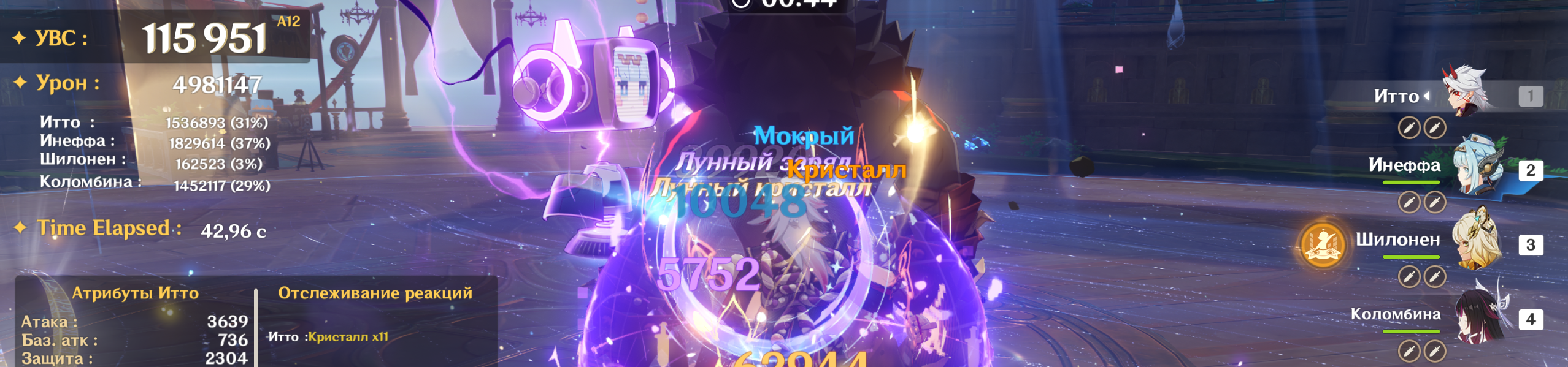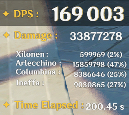 Недокачанная Нинка в эмблеме и с очень плохим исполнением нанесла 70к дпс. Если довести эту пачку до ума, то она запросто может достичь 85-90к, если не больше. Зибай похоже реально не нужна, на большинстве аккаунтов уже и так есть все необходимые инструменты для закрытия будущих кокблоков на лунную кристаллизацию.
