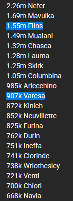 Тестил-тестил. Тестил-тестил. В итоге для почти ВСЕХ моих относительно старых с1р1 (вареса, арля, невилет, часка) лучшая пачка с инеффой+колумбиной. Единственное исключение - с1р1 акула. Как-то обидно, потому что смысл с1р1 дпс в том, чтобы усиливать их в гипер пачке, а не совать в коляску. Ну с варесой ещё ладно, у меня нет дурина и мопеда, там будет лучше лунокала.