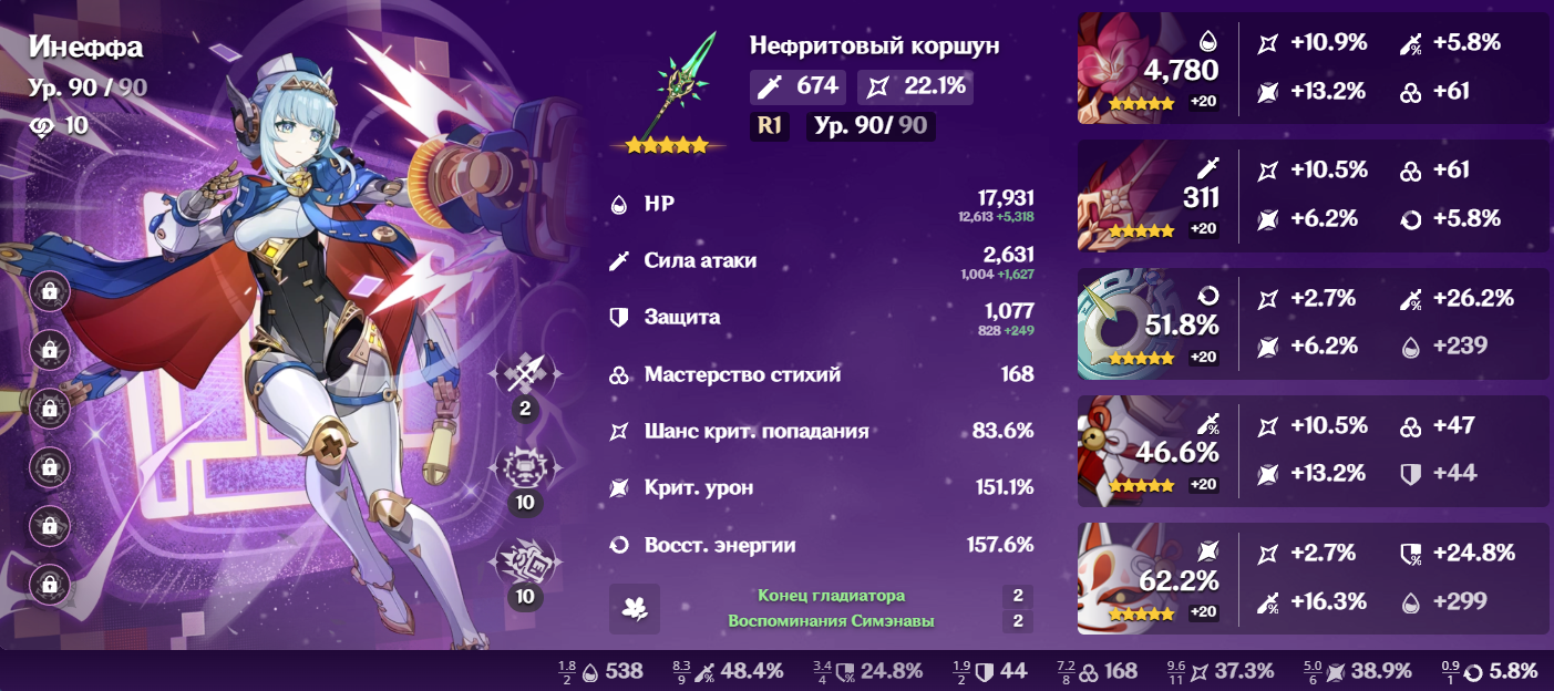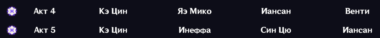 Вообще, мне кажется, лунный заряженный вышел куда круче лунных арбузиков, там пачка чувствуется более стабильной и менее требовательной, по большей части за счет Инеффы, которая в разы лучше Лаумы, к тому же дает щит, ну и идеальная 100% синергия с Айно. У лунного дендро все как-то сложно, без консто сигн дамаг не жмется, ну и типа оба стандартных 5 зв каталика не подходят Нефер, а вот Флинсу ок коршун, Инеффе пойдет ось. Или ивент копье, или крафт, или другое ивент копье, или БП старый или БП новый. Много опций.