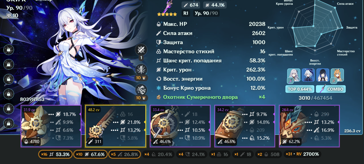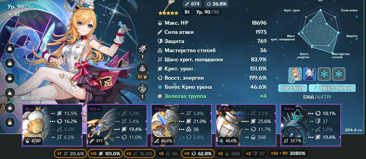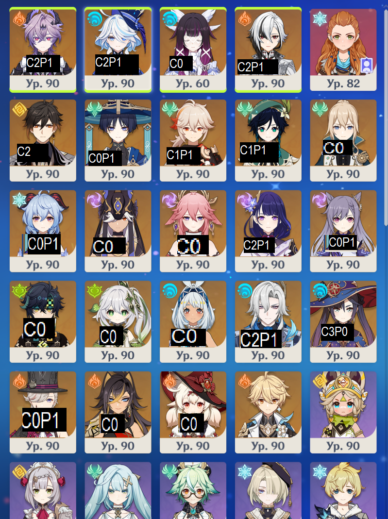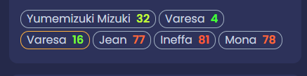С7р1 Дайски, с2р1 Шилонен, хотя она тут чисто хп заливает своей констой Фурине, лень было бениса переодевать и ставить, разница думаю не особо ощутимая была бы, Фурина с1, Мона с4.