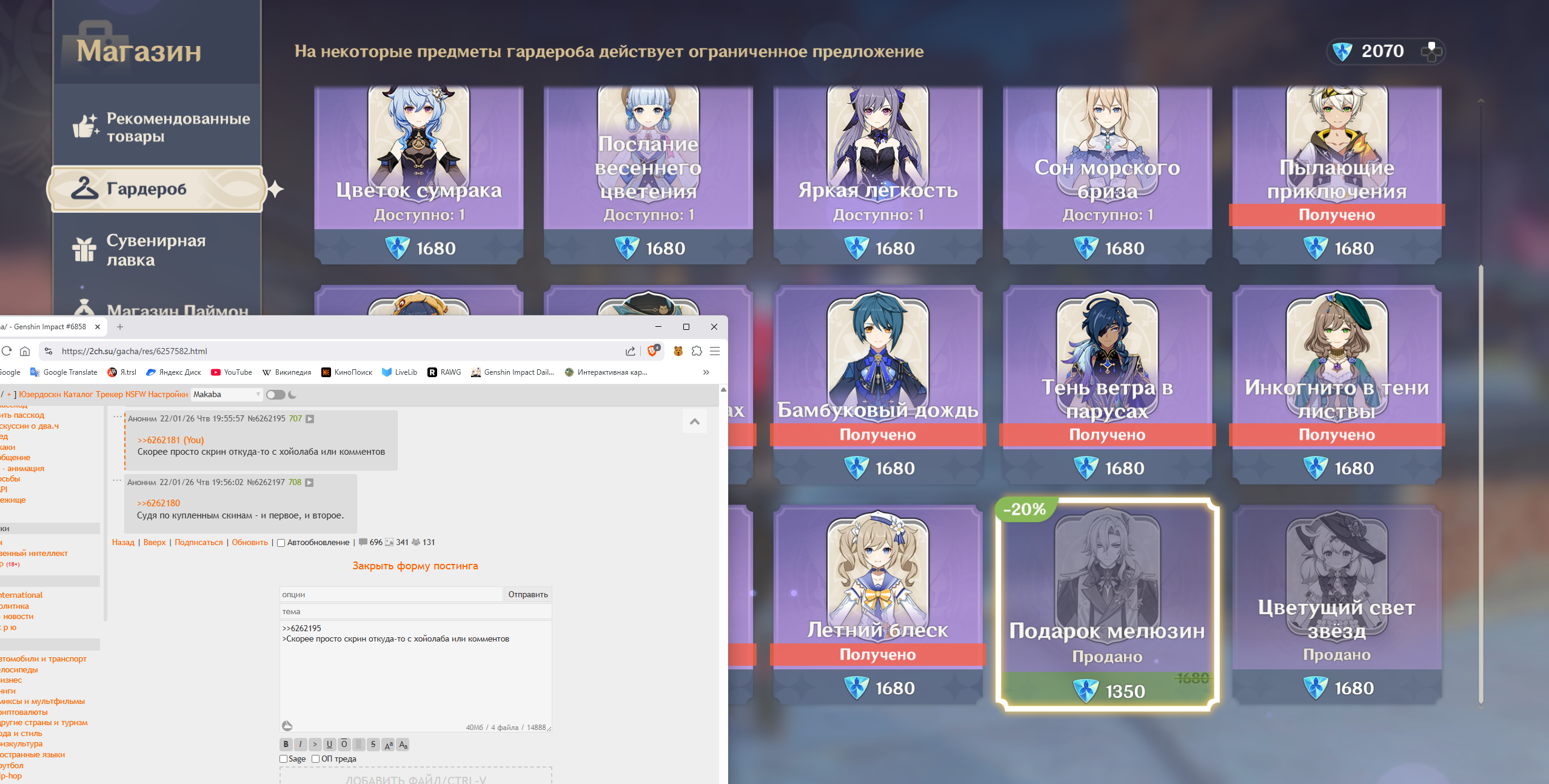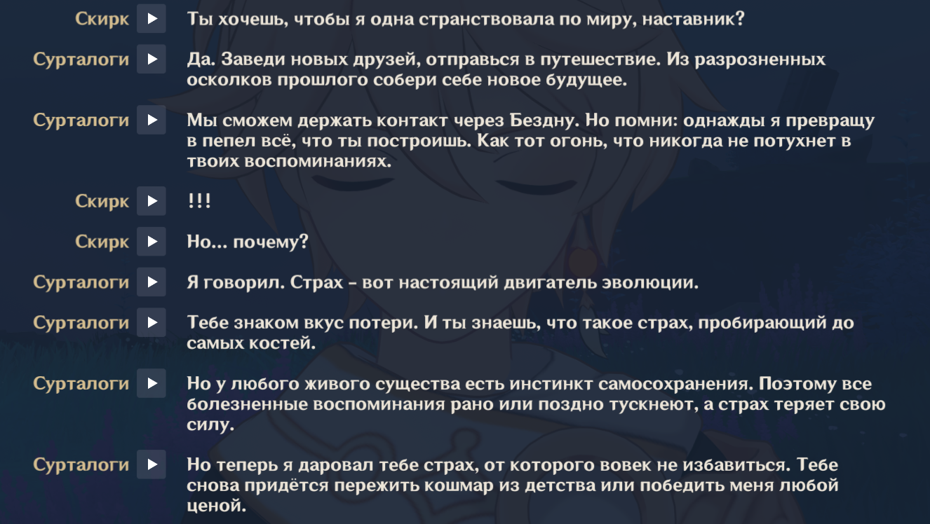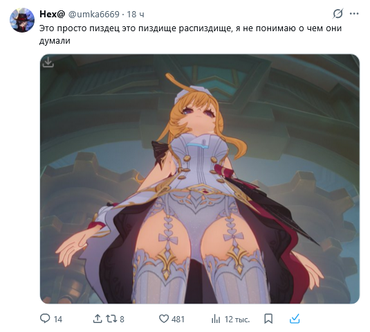 >>6258382 >>6258391 >>6258402 >Как ты вообще умудрился ее скипнуть >Зачем ты ризли крутил >Есть жопич, нет Фурины Отвечу сразу всем, ибо ответ один — я падисар! не нравится мне Фурина. Вот, специально нашёл момент из квеста. Вот начиная отсюда я сразу понял, что с данным человеком нам не по пути и я либо убью её, либо себя, если нас запрут в одной комнате. Вот прям всем своим естеством она лично мне неприятна и даже противна, ну что я сделаю. А тратить крутки на подобного персонажа это дурость. Ризли крутил потому что мужик крутой, в последние дни баннера еле-еле забрал, баланс гемов в ноль слил. В целом, доволен, боевой единицей его никогда не считал, но так, по миру побегать, поприкалываться сойдёт. Вот.