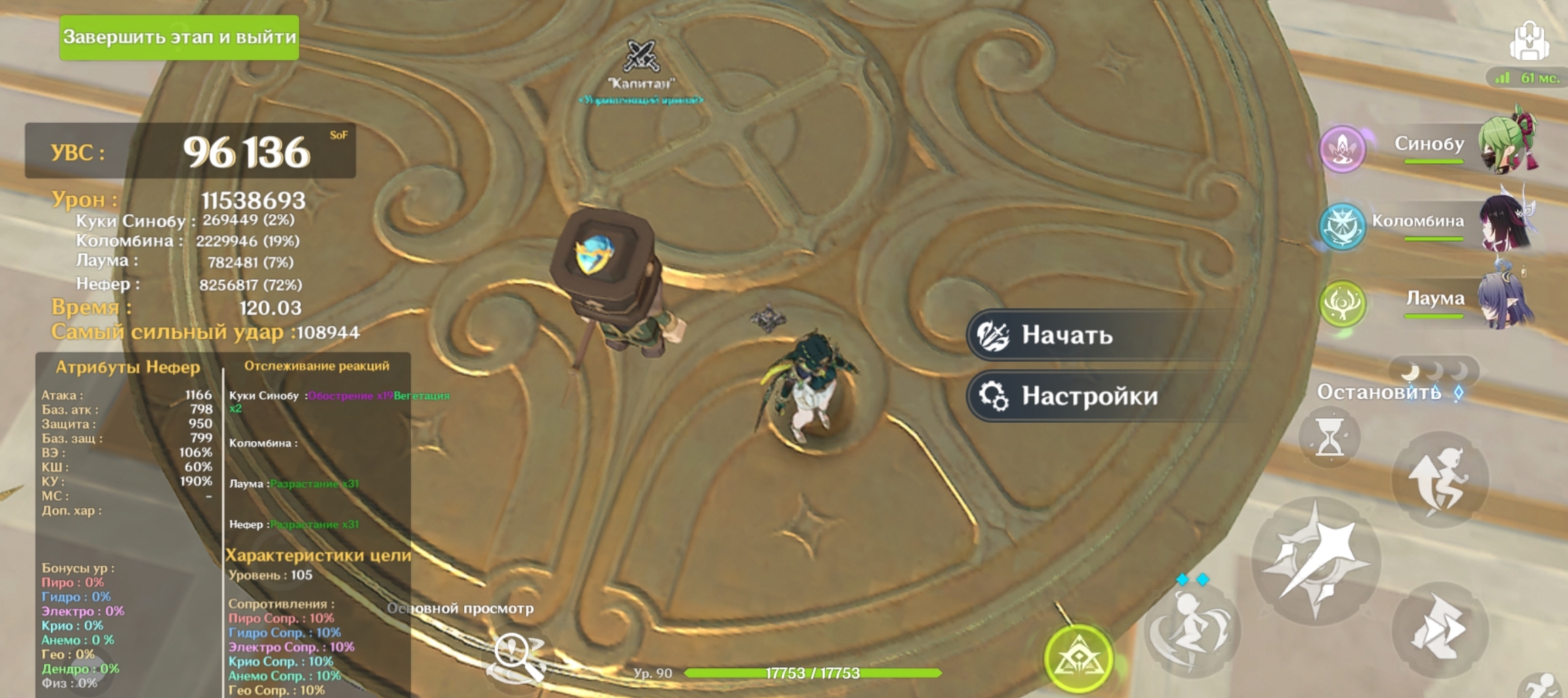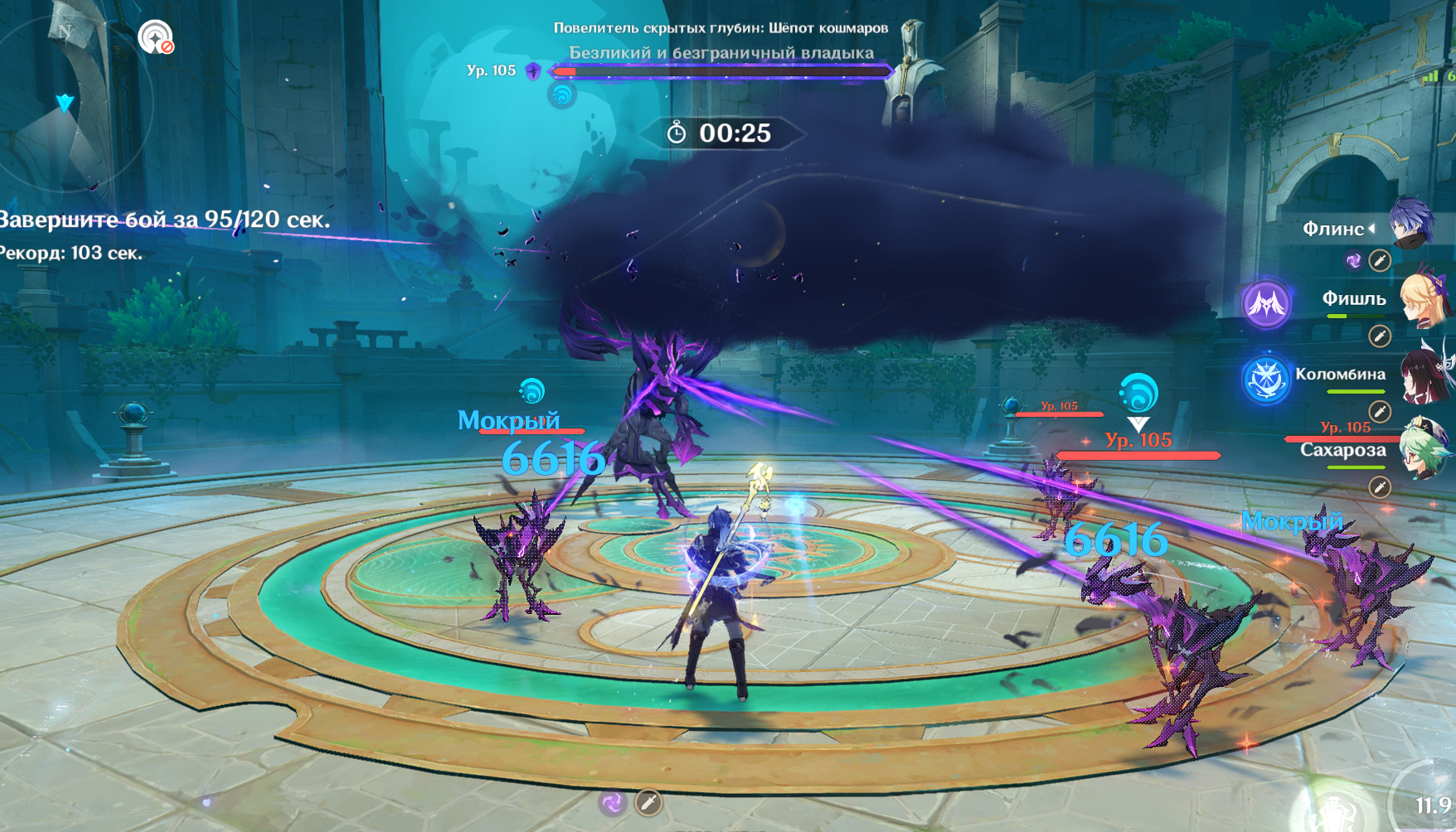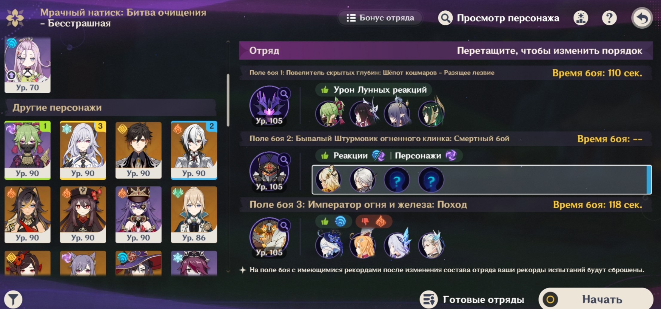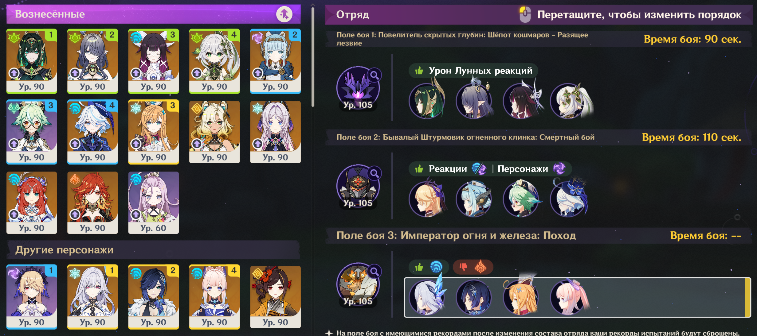 Передрочил половину артов на надоеде и попытался выжать максимальный ку, хп и мс с сохранением энергии, сразу был заметен прирост урона на щите, прошёл с первого же трая. Сигны на Шило и Варесе. Нахида с фавонием. Думаю с2 Клумба и Фурина заменяются на сигны у дд и пройти можно будет с такими артами на всех.