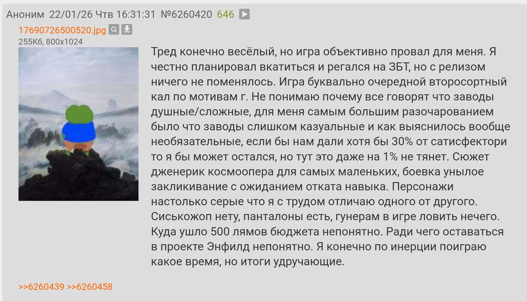 Пришёл домой. Пролистал тред. Не увидел постов с Эндфилдом и разнообразными "когда у нас так". Запрашиваю в тредовчан положняк по сегодняшнему дню и релизу конкурента.