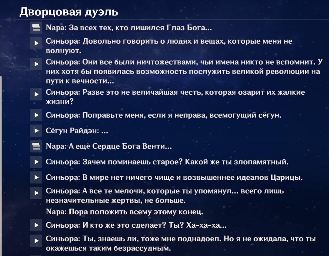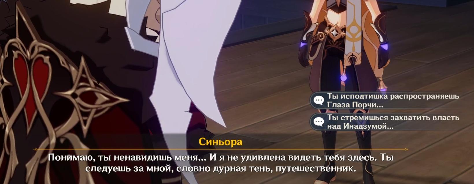 Эта претензия конкретно к Райден и Эй, как к основоположникам приказа Сакоку, а не к Синьоре.