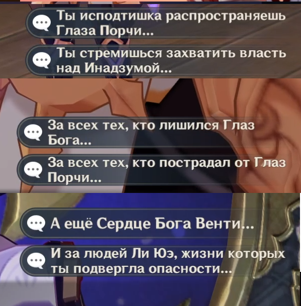 Все претензии к Мораксу. Это конкретно его часть контракта, его план, его желание, которое он скинул на руку Фатуи. В общем обвинение перенаправляется к ЧжунЛи, как главному инициатору существования плана по буйству Осиала.