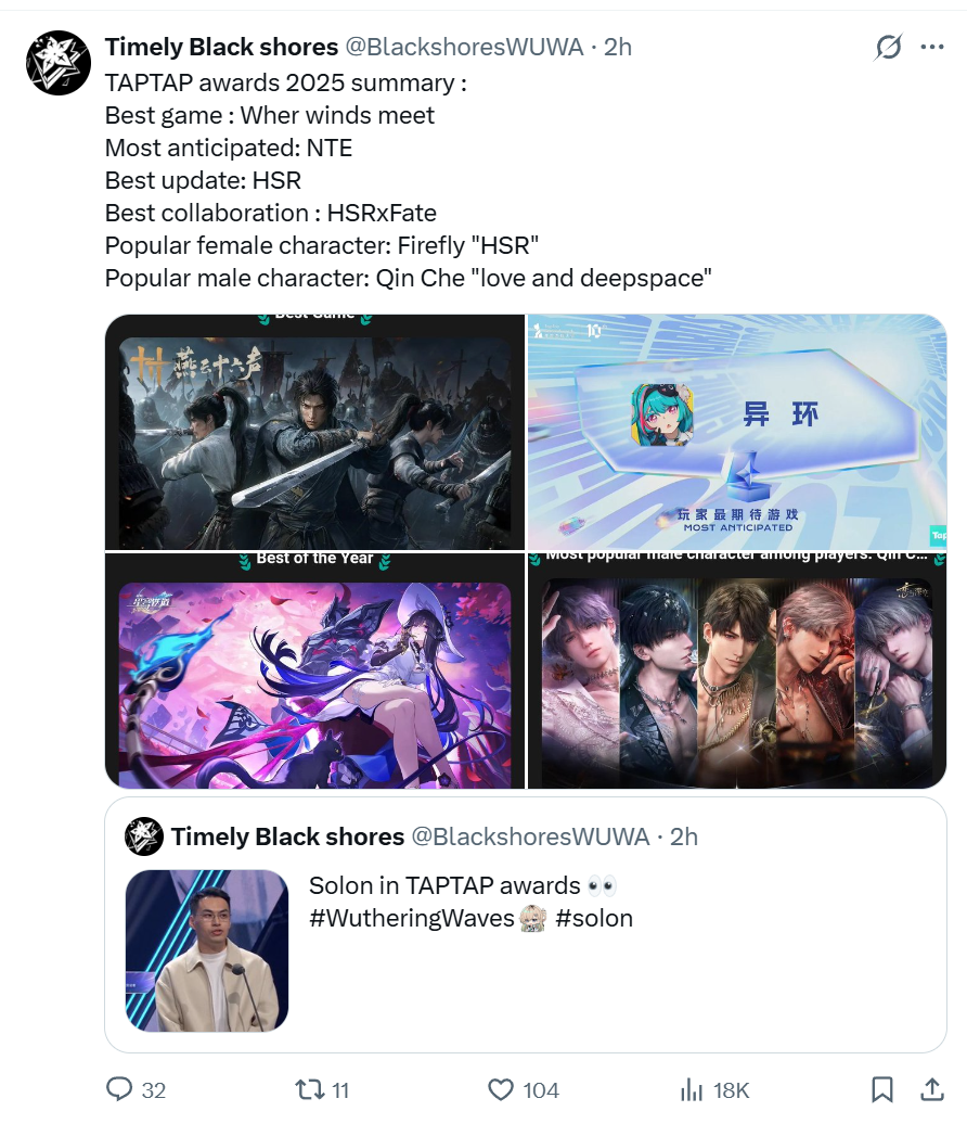 Тоже удивлен что аркнайтс, но наверное потому что он уже вышел на момент тап-тап эвордс. Вот если бы выход перенесли на весну - тогда бы да.