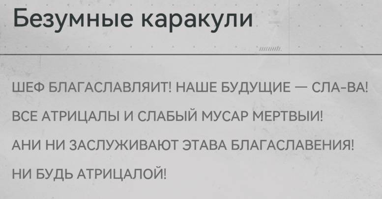 >Жадная гача, лудкотряска, душка завод. Это наименьшие проблемы игры (что так копил в старых ушках, что здесь буду), я не ебу что думали грифы когда делали эту игру (хотя завод это охуенно, единственный аспект игры где они реально постарались, сделать не на отъебись) В итоге получили душную хуйню для нормискота, где нужно ебать заводы по несколько часов, максимально блеклую, срущую на весь бренд аркнайтс(тм) историю, которая отпугивает тех кто пришёл со старых ушек, и боевку говна Для какой аудитории этот максимально усредненный корпокал - не ясно