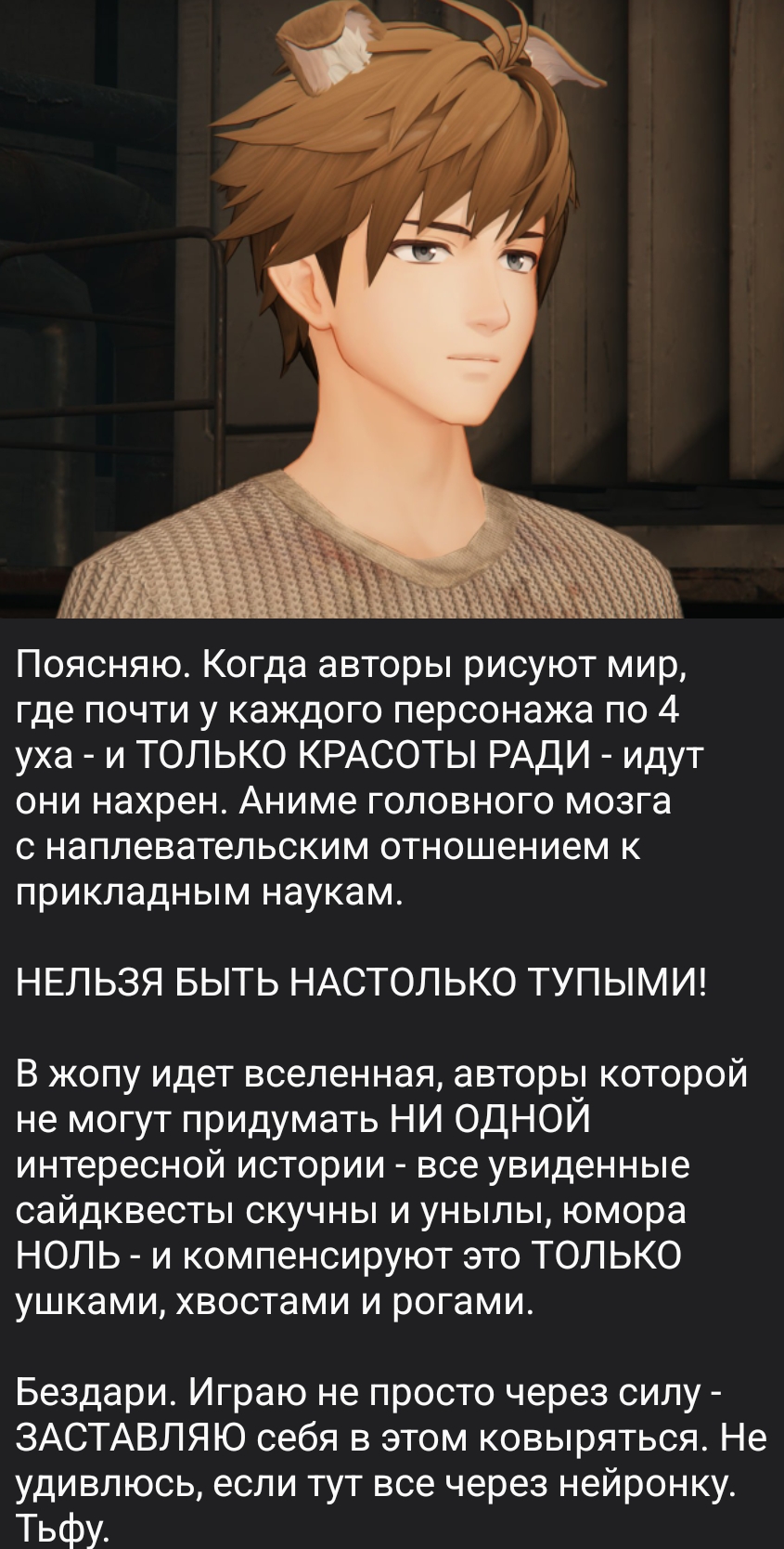 >>6269947 > Их не надо читать Если бы. Но тебя заставляют их протыкивать. Чудовищно раздражает, я конечно понимаю на какую аудиторию г-животных игра ориентирована, да даже с осознанием этого Хаймао совсем ёбу дал.