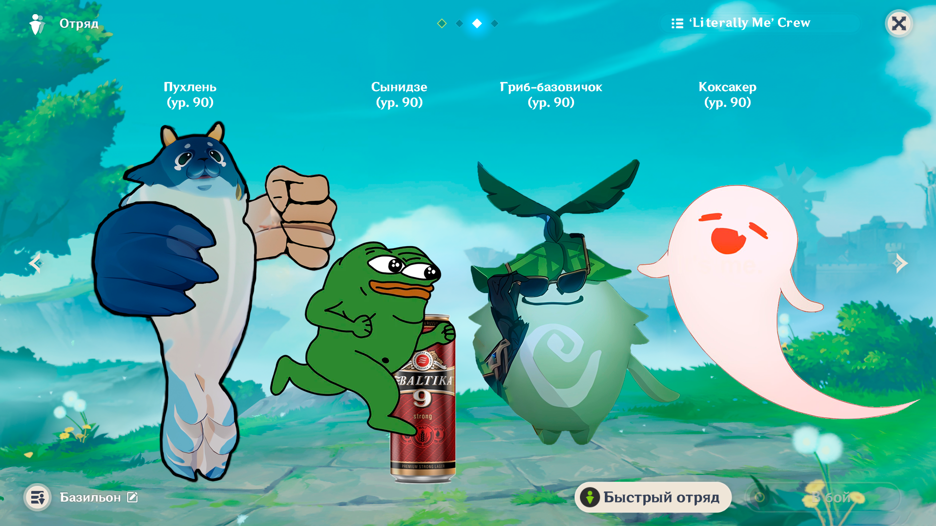 Бездамажная Корова не осиливает Раскольникова, даже с Клумбой, там как минимум надо брать ещё и Фурину или Инеффу Но если взять Инеффу, то Флинс не осиливает собаку, там вообще самый жесткий босс и тоже кокблочный, его у меня осиливает только полная котлета лунных, то есть Флинс, Инеффа и Айно А если взять Фурину, то кто будет осиливать краба? Невыч в соло не тащит катулю, можно конечно угореть и взять Мопед, но вряд ли чем-то поможет против босса с пиро щитом.