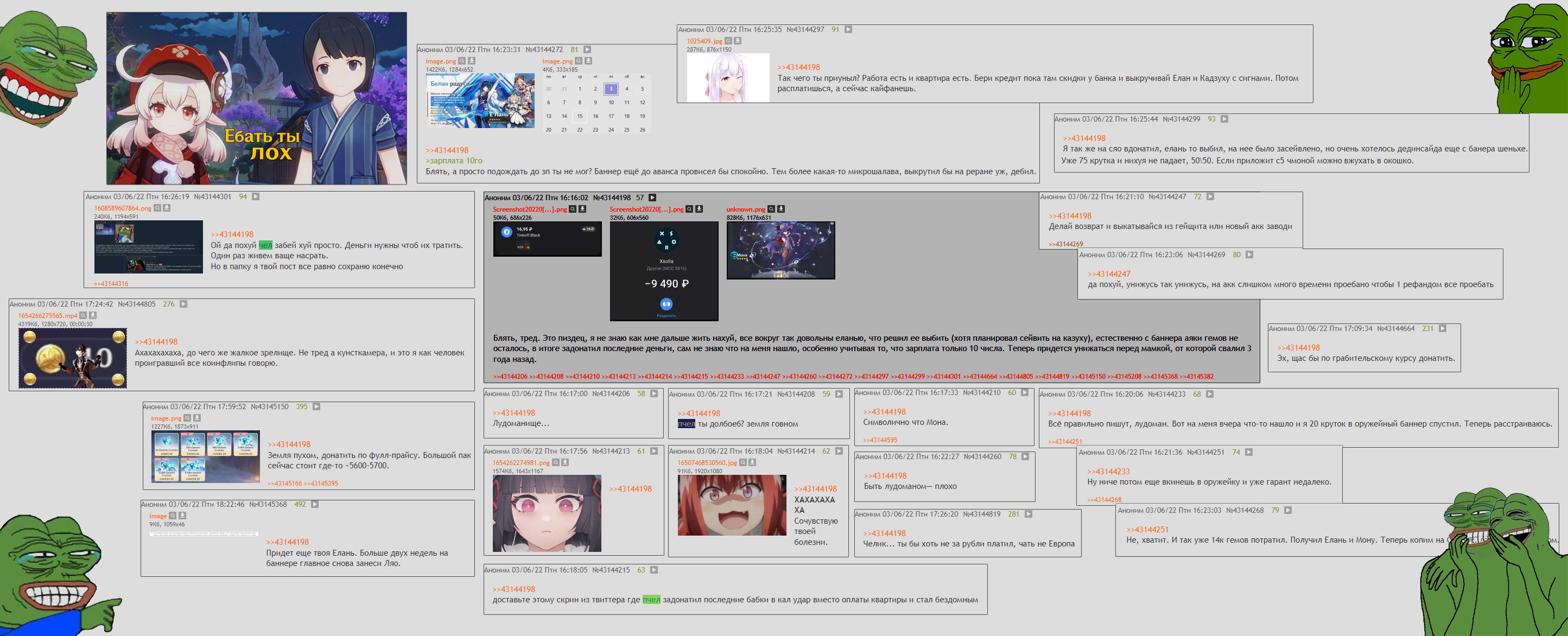 >>6301780 >Тяжелая жизнь нынче у эманаторов В ХСР-треде только на днях была ковровая раздача подписек. У Эманаторов всё нормально, это геншинята побираются.