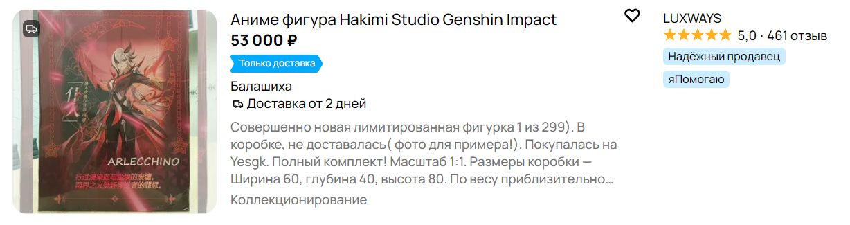 >>6304688 Знаю я таких умников, напечатают серую хуйню и все. Потому что профессионально покрасить сами не могут, а заказать такой покрас стоит как купить офф фигурку. В итоге за копейки покупают каличный покрас и все.