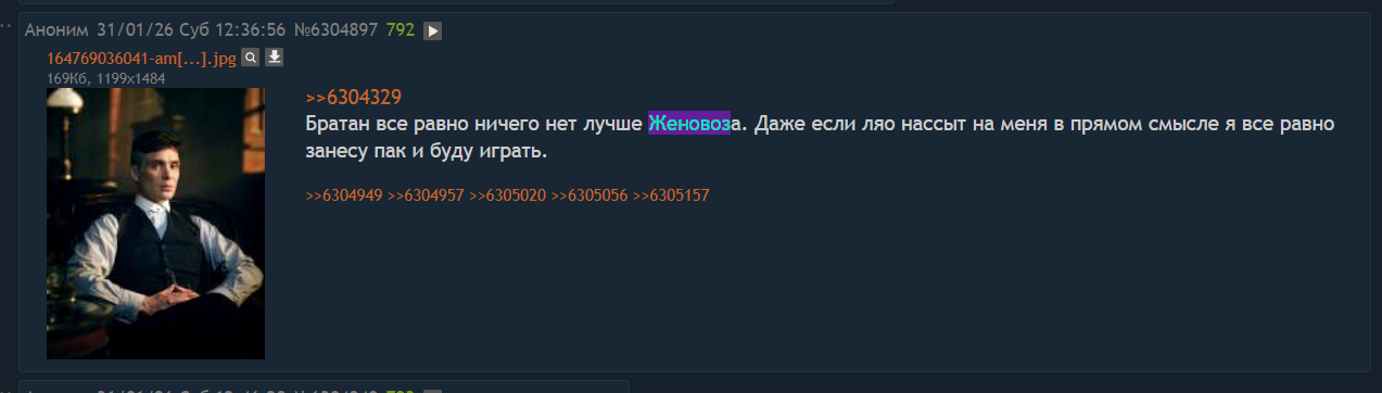 >>6302555 >До недавнего времени и у зетки был, но чёт там последний месяц с хуем только дикий думпостинг и бешенство >>6302564 >Вот сейм кста, просто какой-то раковник душевнобольных, одни и те же набросы по кругу, даже читать скучно стало А что случилось? Мод же всего месяц назад называл зюзю лучшим тредом доски, даже пасскоды им раздавал...