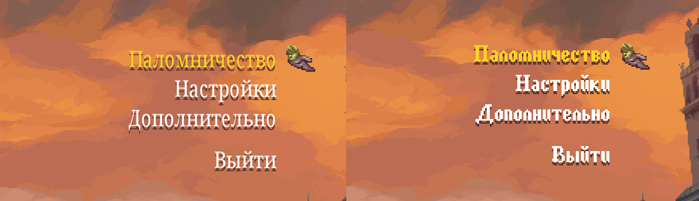 >>6307549 Не, отчасти тот анон прав, шрифты пиздец решают и влияют на восприятие, я во второго фимозника, например, играть не могу без предварительно установленного "иконического" шрифта. Сам посмотри, в первом случае это кал стоковый, во втором случае уже душа имеется.