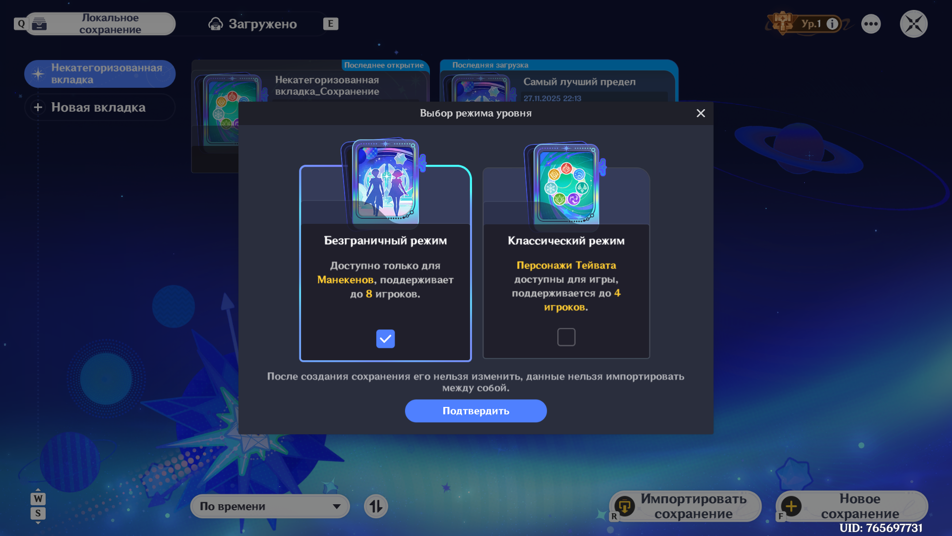 >>6306390 (OP) >>6307792 Да все, я уже без вас сосачеров сам все понял, что изменить режим на классический уже невозможно и это весьма печально. Вот вы представьте, я так долго трудился над созданием самого лучшего астрального предела и когда была добавлена возможность игры за персонажей из Тейвата она сразу оказалась недоступной для моего восхитительного предела просто потому что я его создал не в то время. Это возмутительно.
