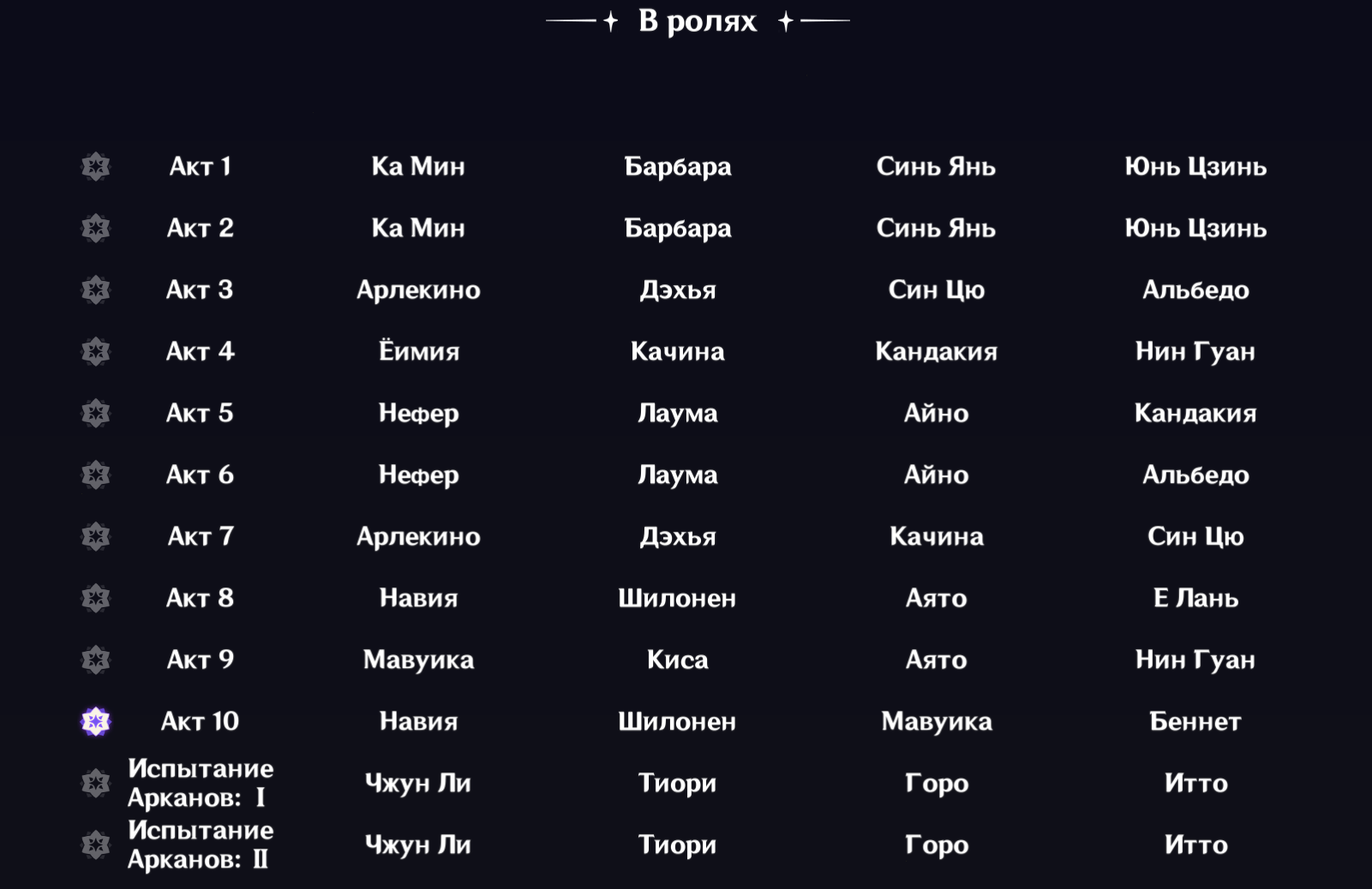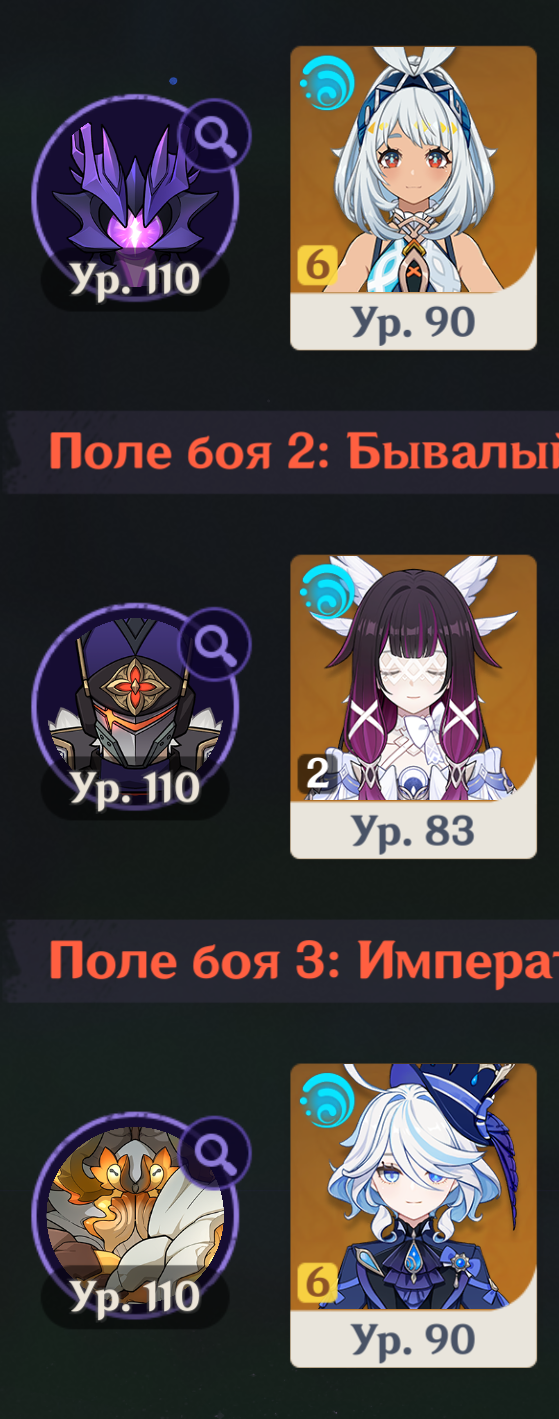 >>6310560 Я их всегда беру перед финальным боссом на сдачу, либо если текущий отряд не вывозит и нужно какое-никакое минимальное усиление. Типа, вот так у меня было в прошлом театре. В этом то же самое, чисто перед Кентавром пиро/гео набрал и домой.