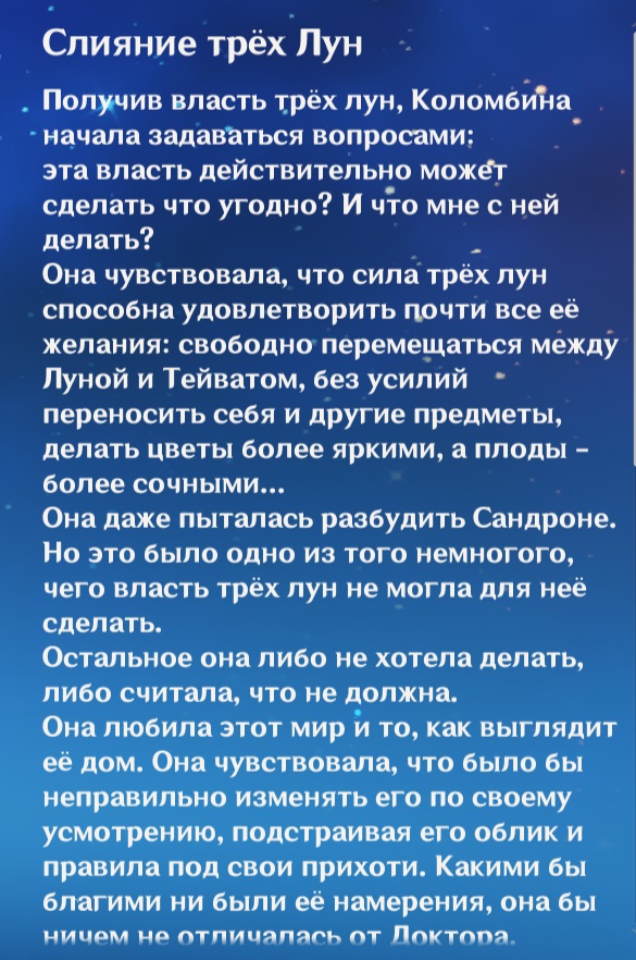 >Он же вроде в конечном счёте просто против лживости Тейвата. Нет, он хочет эксперименты над людьми по причине А ЧО БУДЕТ?!! Сила лун даёт годмод на всё, и он сразу создав каверны начал издеваться над бедолагами кто не успел сбежать. Царица взяла потому что полезный шизик был.