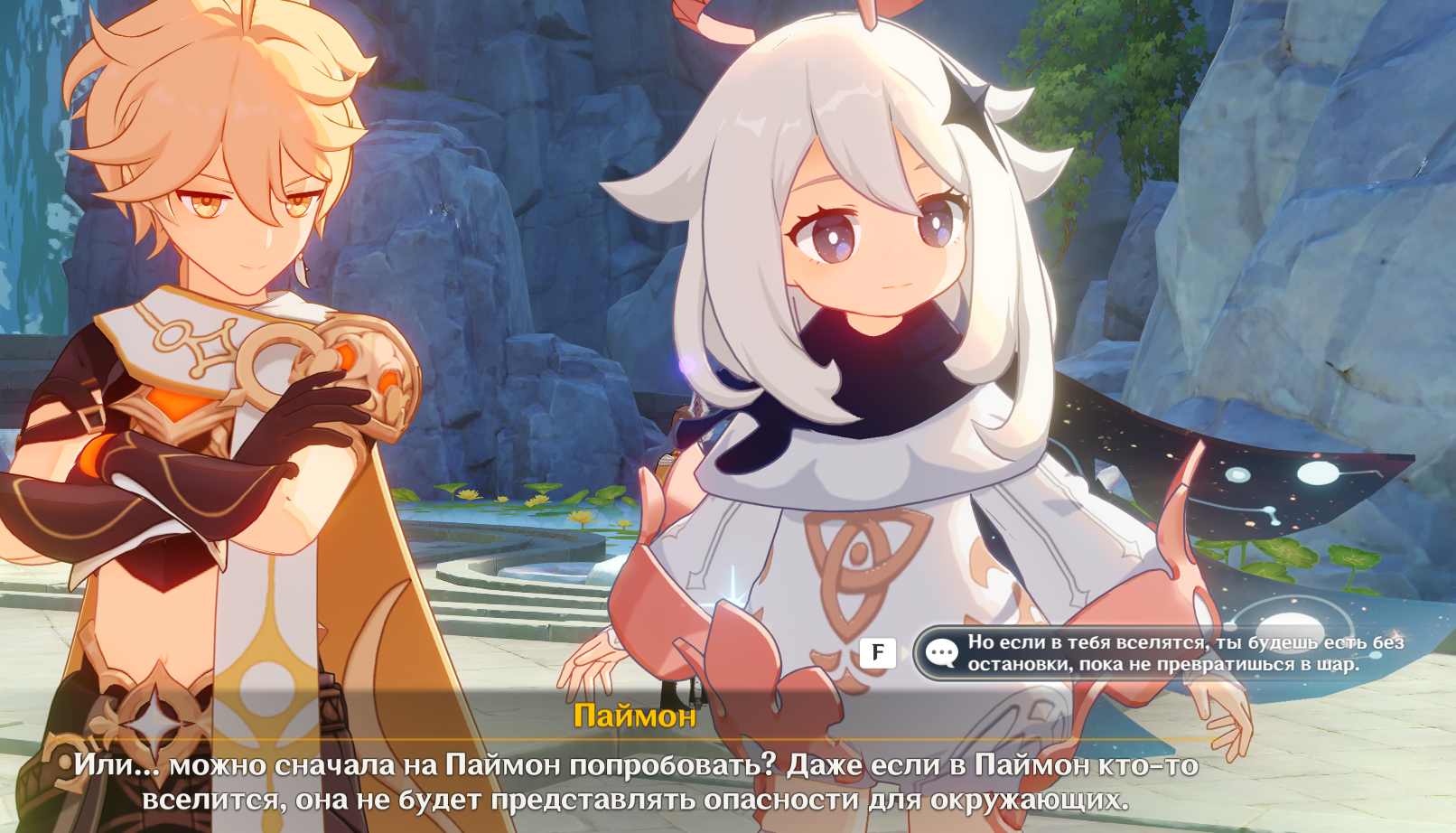 Ты больше не любишь Паймон? Ты же говорил, что Паймон твой лучший друг, у нас впереди ещё столько приключений. Может, пойдём искать сокровища? Или поймаем рыбки?