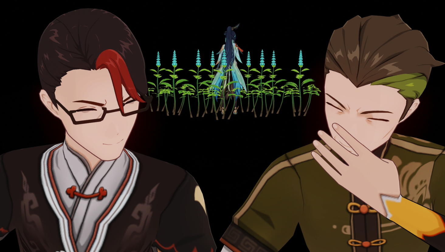 мне написал геншинёнок в личку с просьбой помочь захожу в его мир и там краб который в подземелье у лунных сектантов, типо легенда местная я кста ваще не понял что от меня требовалось в постуке этого краба взял инефу и байжука, по ощущению инефа там была лишняя а челик ваще мавуику взял и клумбу. стукали его минут 5 наверно не понял почему эти синие цветки то превращались в зеленые и атаковали краба, то прост остояли на похуях.