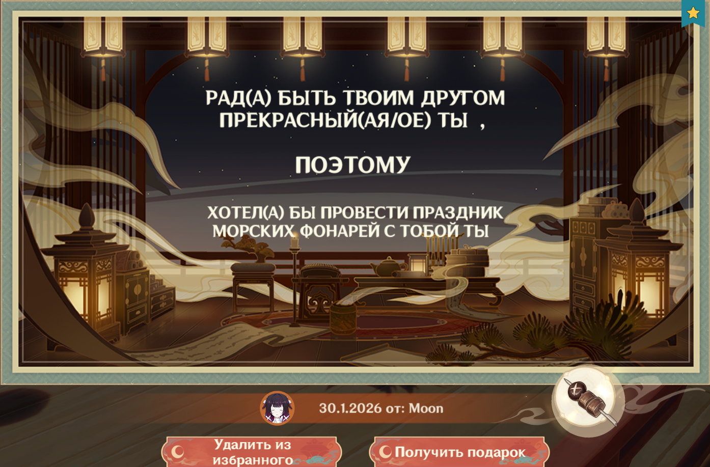 Хе-хе, ну конечно же это не все подарки! Смотри, Паймон смастерила для тебя новенький глайдер! Получился немного неряшливым, но... надеюсь, тебе понравится.