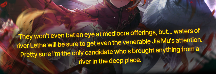 Судя по монологам и пассивкам Риена, задачей Джихуя в главе было мощнейше обоссать буддизм с максимально васянских позиций. Карма-нирвана хуе-мое, надо же помнить что хорошее тоже есть епта, а не только плохое, вот и все нах, хули тут... Ждем продолжения банкета в канто Мерсо, где Джихуй будет с высоты своей психологии за 99.99$ в час засирать христианство доказывая, что рай - это друзья, которых мы завели по пути.
