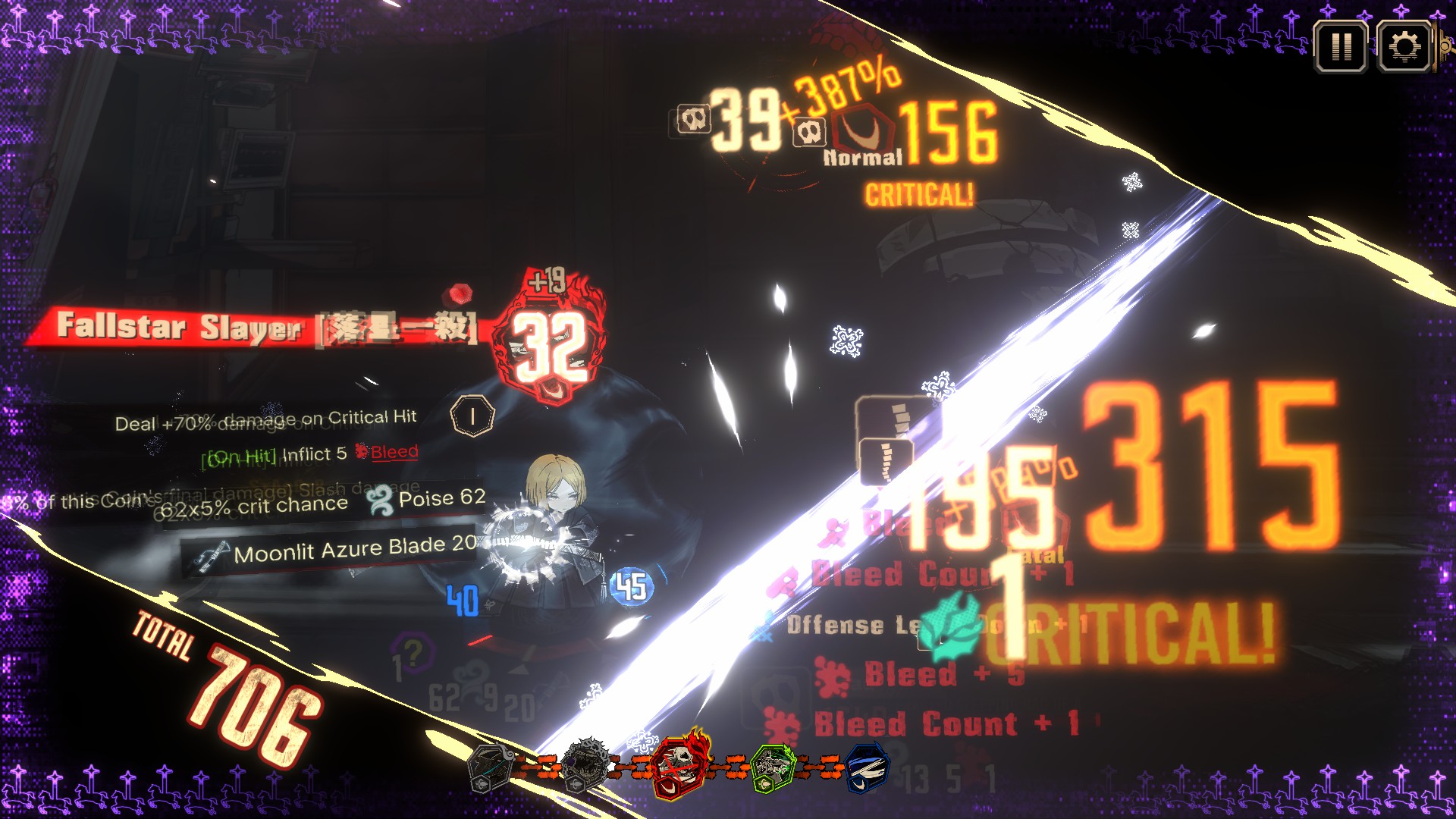 Locked blade Record name of each different skills used this Encounter. After (5 + number of slots) uniquely named skills used replace this with Unlocked blade.