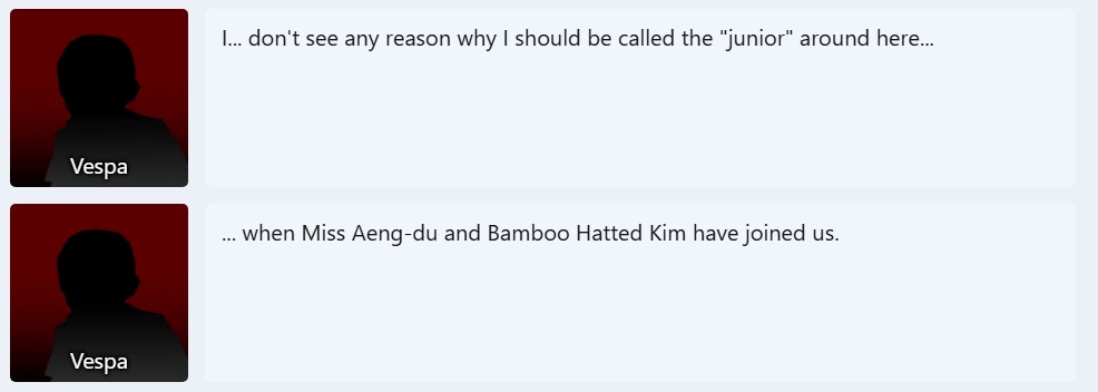 Алсо, тот факт что Реша по итогу первой напала на Батьков, которые даже не собирались ничего Арае делать, превращает историю в настоящую комедию. Ей вообще нормально было в доме паука, вон даже Лей Хень её не насиловал в жопу оказывается в кастцене с ним я хотя бы ожидал, что он ей пиздюлей выдаст за влезание в разговор с вышестоящими, но нихуя. Самые токсичные батьки дитачку терпели, остальным вместе с Риеном было норм - исходя из всех диалогов, трогать дитачку никто не собирался. Итого Среша сама себя загазлайтила, напала на родаков и подставила дитачку ради нихуя.
