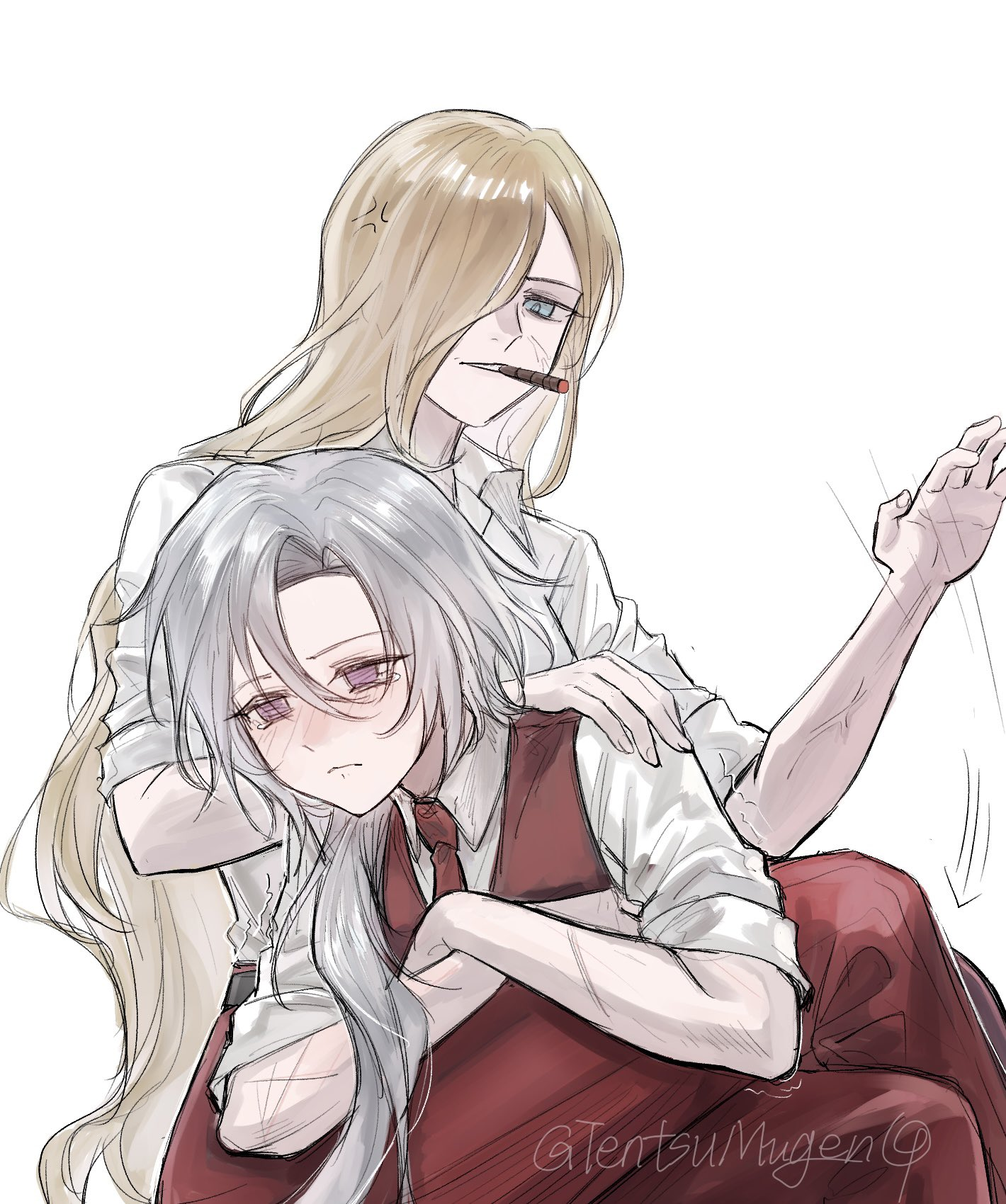 Такое чувство, что в изначальной сюжетке батьки все таки че-то очень пизданутое совершили по отношению к Арае и вот за это Решка их всех порубила и решила бежать. Отдали на анал рейп Лейхэню там, ну или заставили собачек убивать, хз че там Джихуй хотел рассказать. Но в итоге было решено, что это будет джениунли дистюрбинг и слили в то что имеем сейчас. А имеем абсолютно никак не обоснованную ненависть Рёши к Риену вообще нихуя не сделал и всегда поддерживал дочку, Маттиасу то же самое и Лейхую попросил один раз показать, причем даже не сиськи, а мечик. Че эти трое такого сделали Йошихиде, что от их вида её сразу корежить начинало? Судя по имеющемуся на руках сюжету - нихуя вообще не сделали. Итого Реша просто неблагодарная мразь, ну или Джихуй опять сам забыл что придумал.
