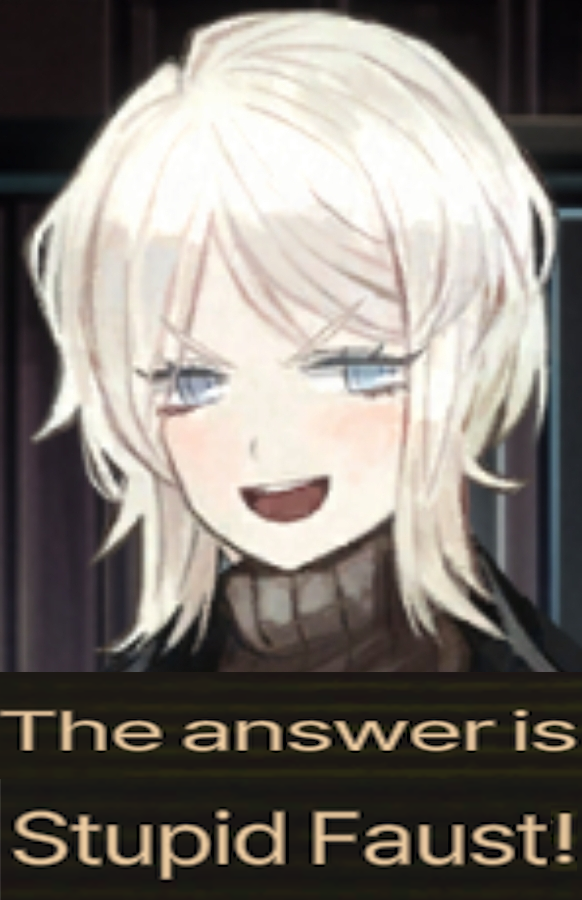 Чет Джихуй поспешил гендербендерить нюрсфазеров в парралелках. Получается у нас Отис - Маттеас, Рёшу - Джихуй Стар почти 100%, Швабра - кактамеё тупаяпизда №1, Дитачка - кактамеё тупаяпизда №2 в ахуе с того, что кто-то вообще имена этих идиотов запомнить удосужился, Фауст - рандомный прозелит. Итого среди нюрсфазеров и учеников еще 2 женских грешника, а из баб у него только одна Родя осталось. Ну и кто теперь получит оголенные робосиськи в качестве ульты, м? Фауст отправлять в другой миррор ворлд и реюзать? Жродя то по всем понятиям баллалайку должна получить.