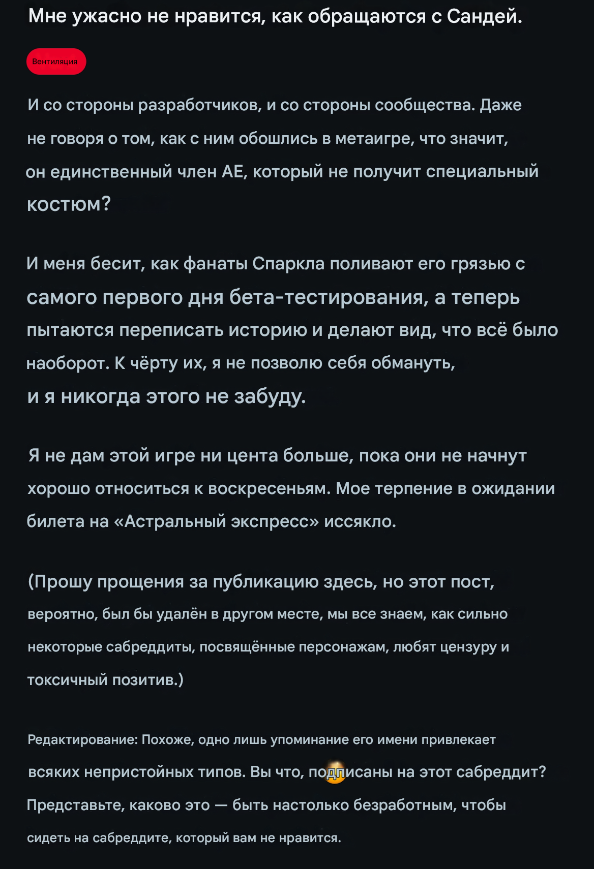>>6314026 То, что он не имеет отношения к безымянным, должно было быть понятно ещё по 3.6 патчу, где Тьмарт буквально его обоссала и выгнала нахуй и всё воссоединение было с гг и Даньком. Но ведь кто-то продолжает верить, что он часть команды, лол.
