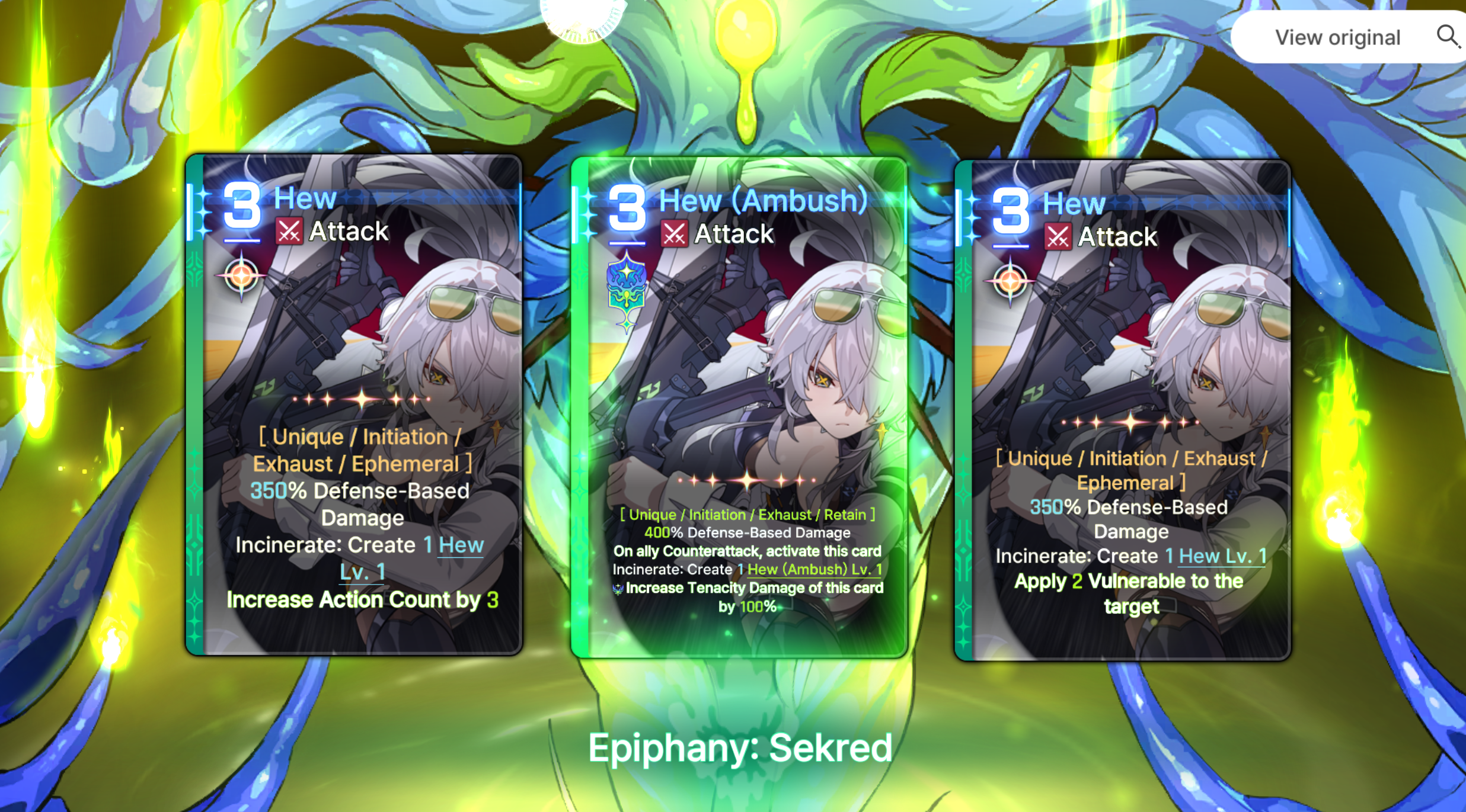 >>6354629 Если я не ошибаюсь, то правый/левый эффект сохраняется только на оригинальной карте и не переходит на апнутый Hew, соответственно прок волыны и экшн каунта произойдет всего один раз, а центральная кроме того, что мощнее, так ещё и даст анону возможность попробовать новую сборку. Марибель и Амир есть у всех
