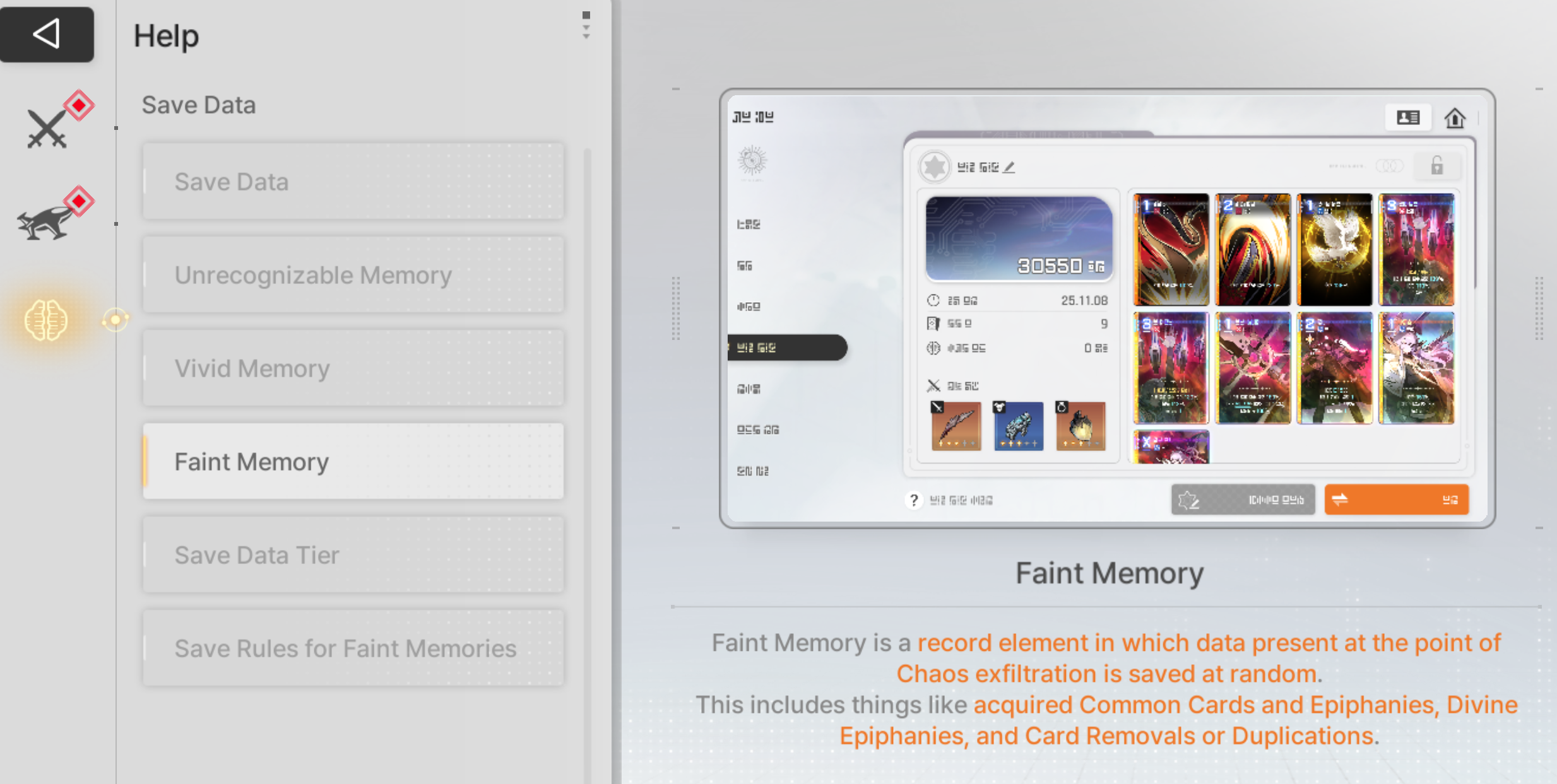 Faint Memory is a category of things that cost a certain amount of points. This includes things like Divine Epiphanies, Neutral Cards that you get from shops or events, card removals, card duplications, etc. On any given Chaos run you will have some amount of budget based on a Tier that the game will tell you when you are starting the run. The budget is 10 times the tier plus 20, so 6th tier Save Data Value means you have a budget of 80 points for Faint Memory. If you go over the budget by accumulating too many Faint Memories over the course of the run then some of the changes you made to your deck will get reverted when it gets saved, so this is why you'll see things like cards that you removed getting re-added to the save file.