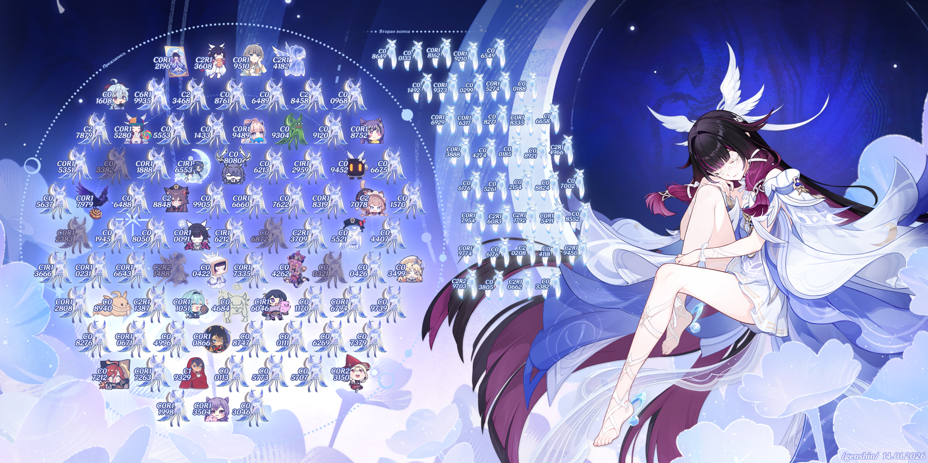 Алтарь Богини Луны - Коломбины Гипоселении. Последние минуты баннера. Рассказать о своих успехах можно со скриншотом, где видны последние 4 цифры UID. Напоминаю что в группе предзаписи можно выбрать свою картинку >>6190926 →.
