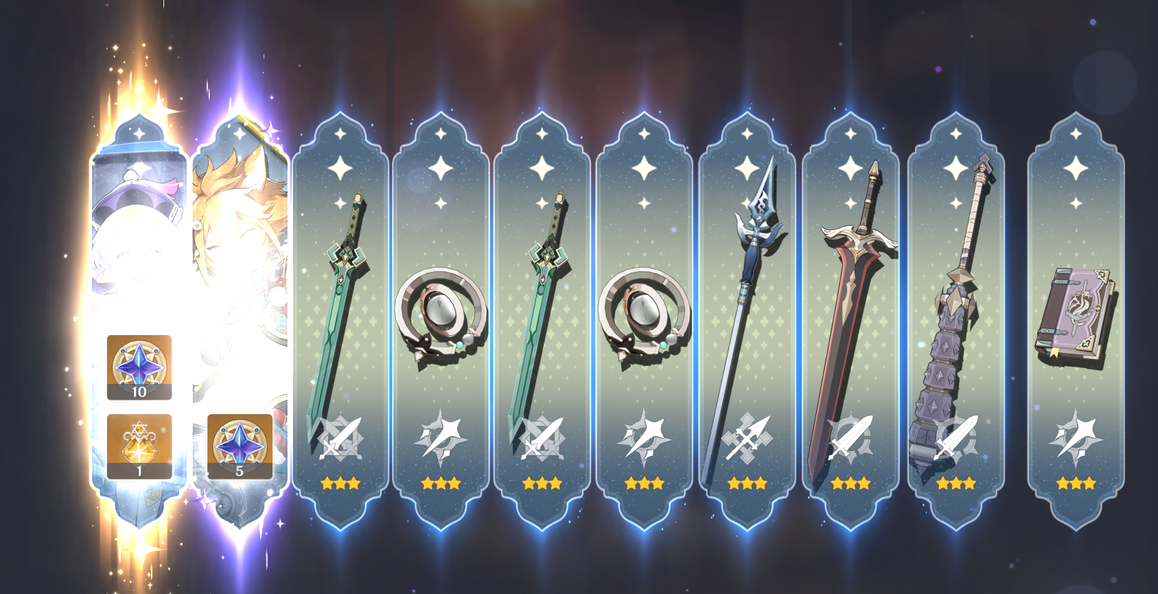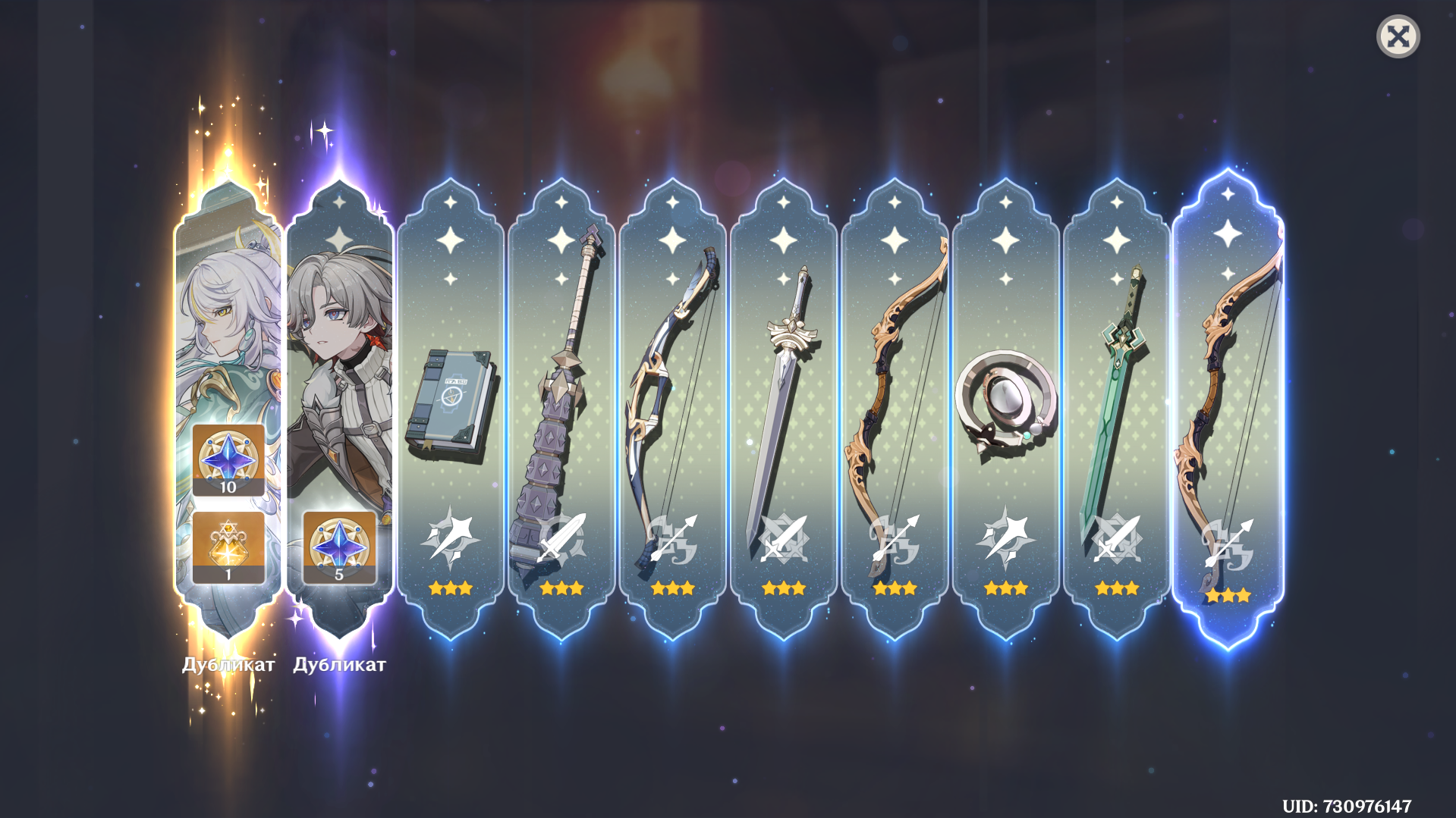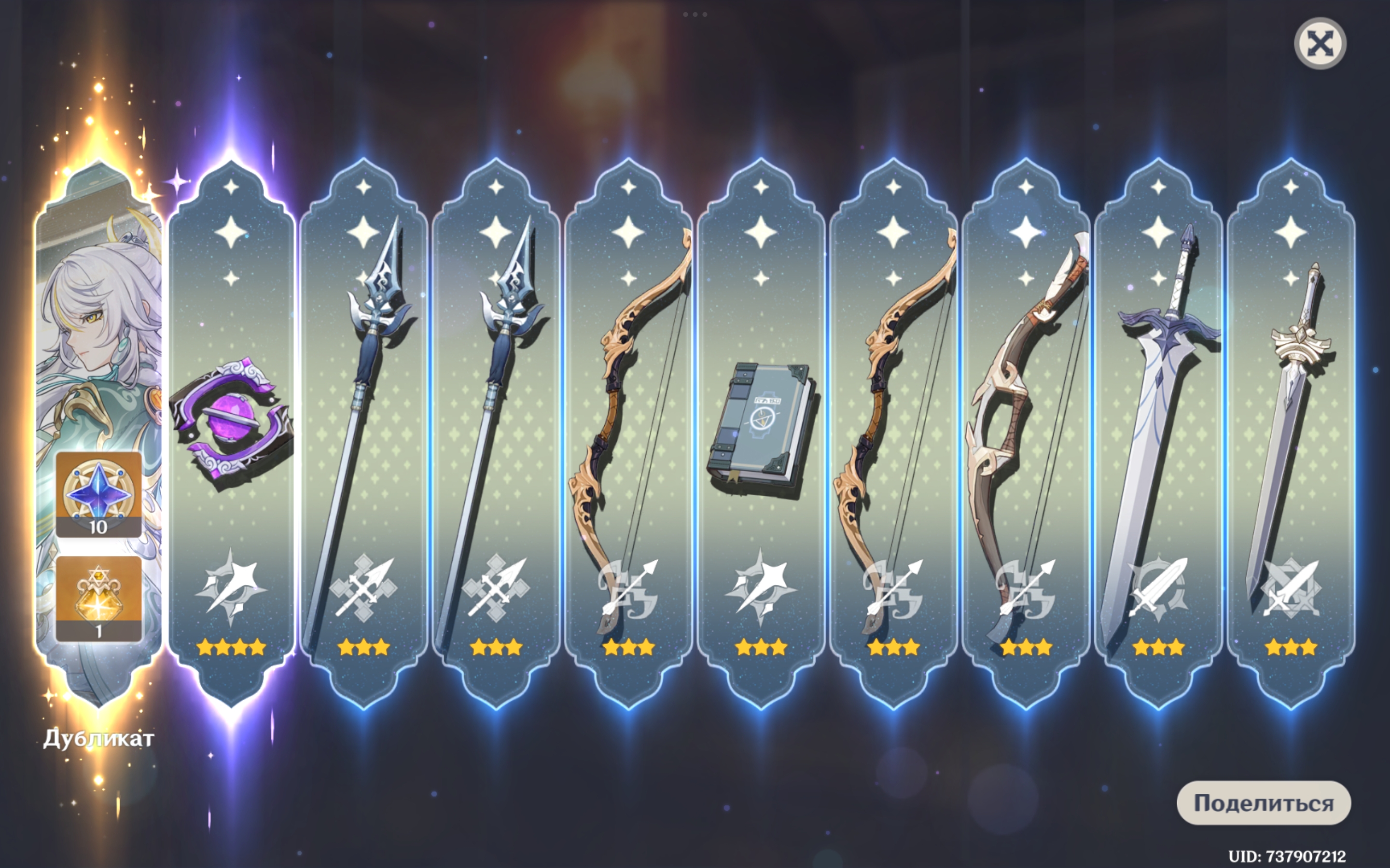 >>6329192 Нормально, пока ловил С6 Иллугу, словил пленительное сияние и С1 Лошадб. Оружие достал без протыкания об стандарт или оружие Нёвиллета. По круткам было 382, осталось (с учётом нападавшего кэшбека) 180. Пожалуй, остановлюсь на этом, надо сохранить крутки для будущего гео-саппорта под кристаллы. Вот такие вот ребята вышли. Поставил в театр, мало ли, кому потрогать хочется. Тред полистал, но свежего поста господина алтарьщика не нашёл, потом отмечусь тогда. Вот.