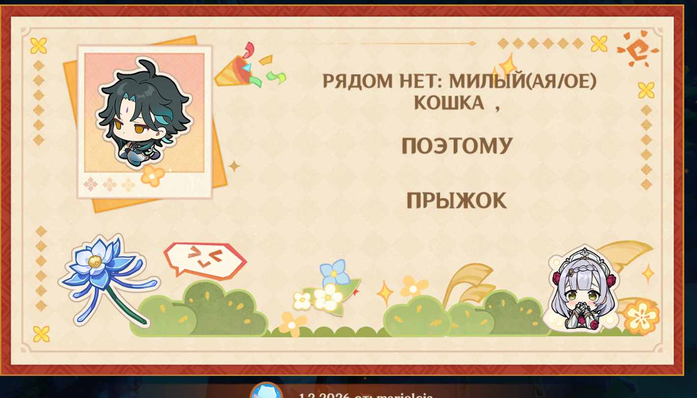 А чего тут, получается ГГ скоро пропишется в Ирминсуль, и досвидос межзвёздные путешествия? ГГ уже и Тейват домом считает. >>6330720 У Нефер чарджухи - так и хочется дождаться пока анимация кончится, а не кэнселить.